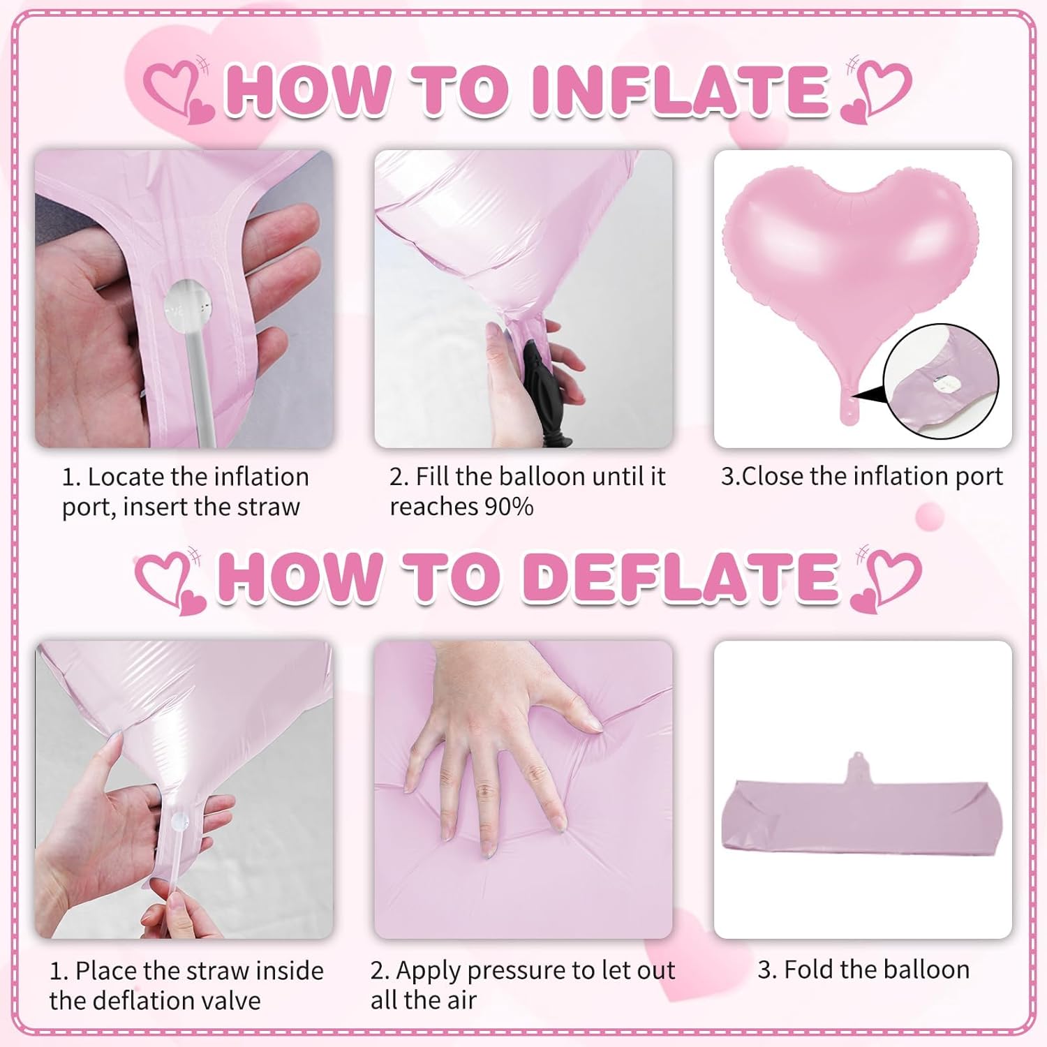 - Easy to Use - Effortlessly inflate our heart shaped foil balloons using the included straw. (If you want a floating effect, you can use helium)Simply pinch the self-sealing valve when full. It can be easily hung on the wall, ceiling or balloon garland, and it looks more advanced as a photo-taking tool!