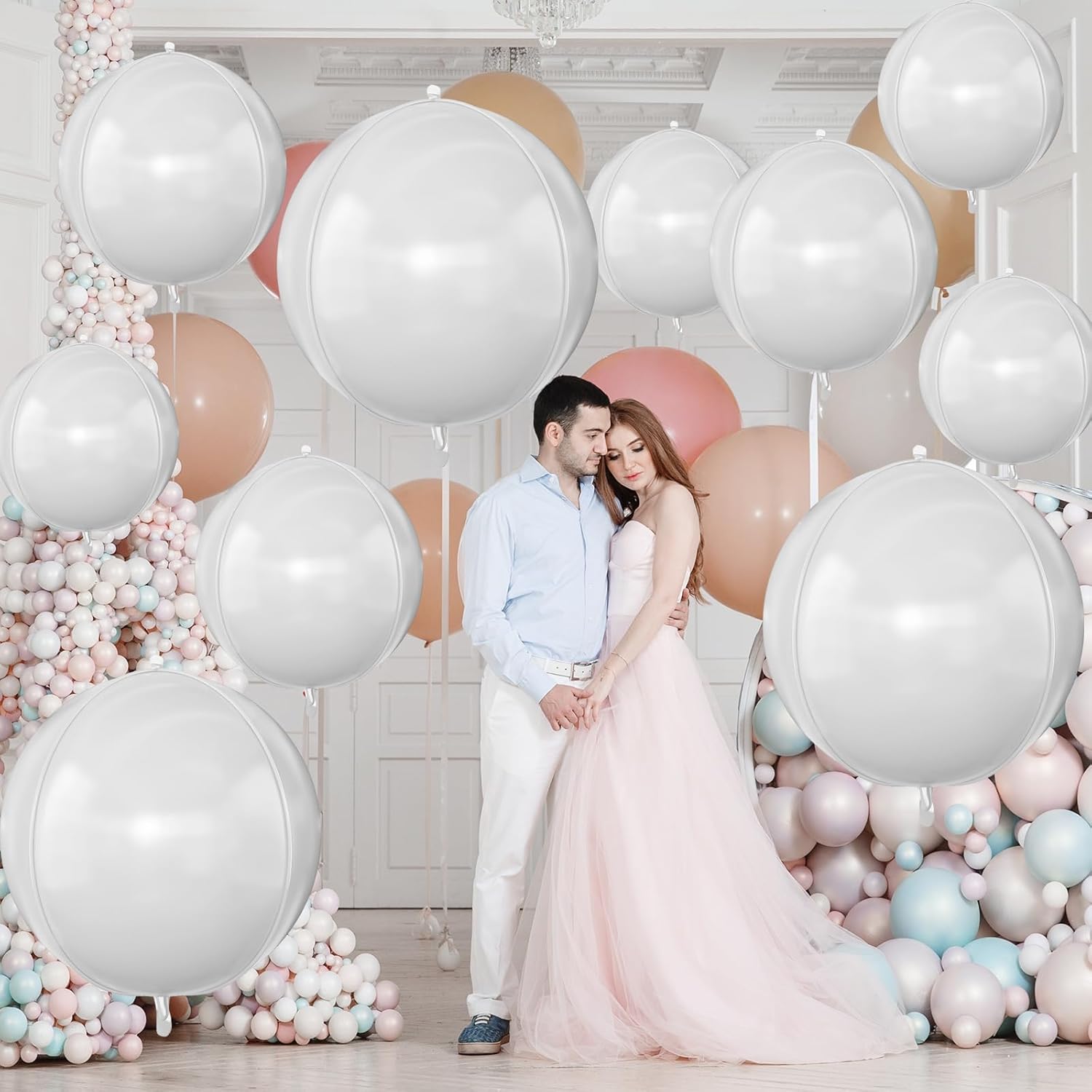 - Easy to Use: Use an electric pump to inflate the 4D white foil balloons until the creases disappear, achieving a round and smooth effect. Stop inflating as soon as the creases disappear.