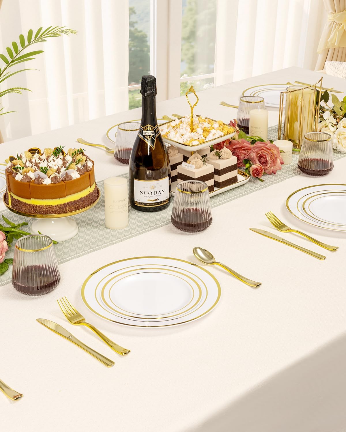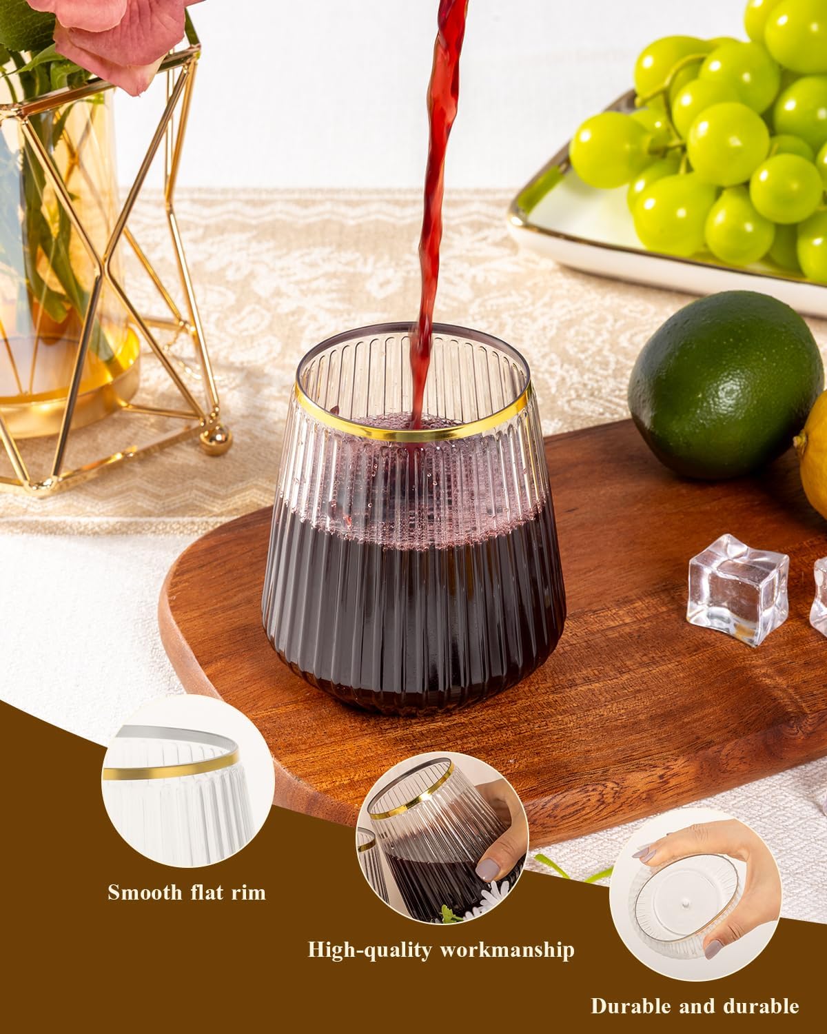 Goodluck 36 Pack 12oz Stemless Plastic Wine Glasses – Clear Ribbed Cups with Gold Rim, Fancy Reusable Disposable Drinkware for Weddings, Parties, Bars, Indoor and Outdoor Events