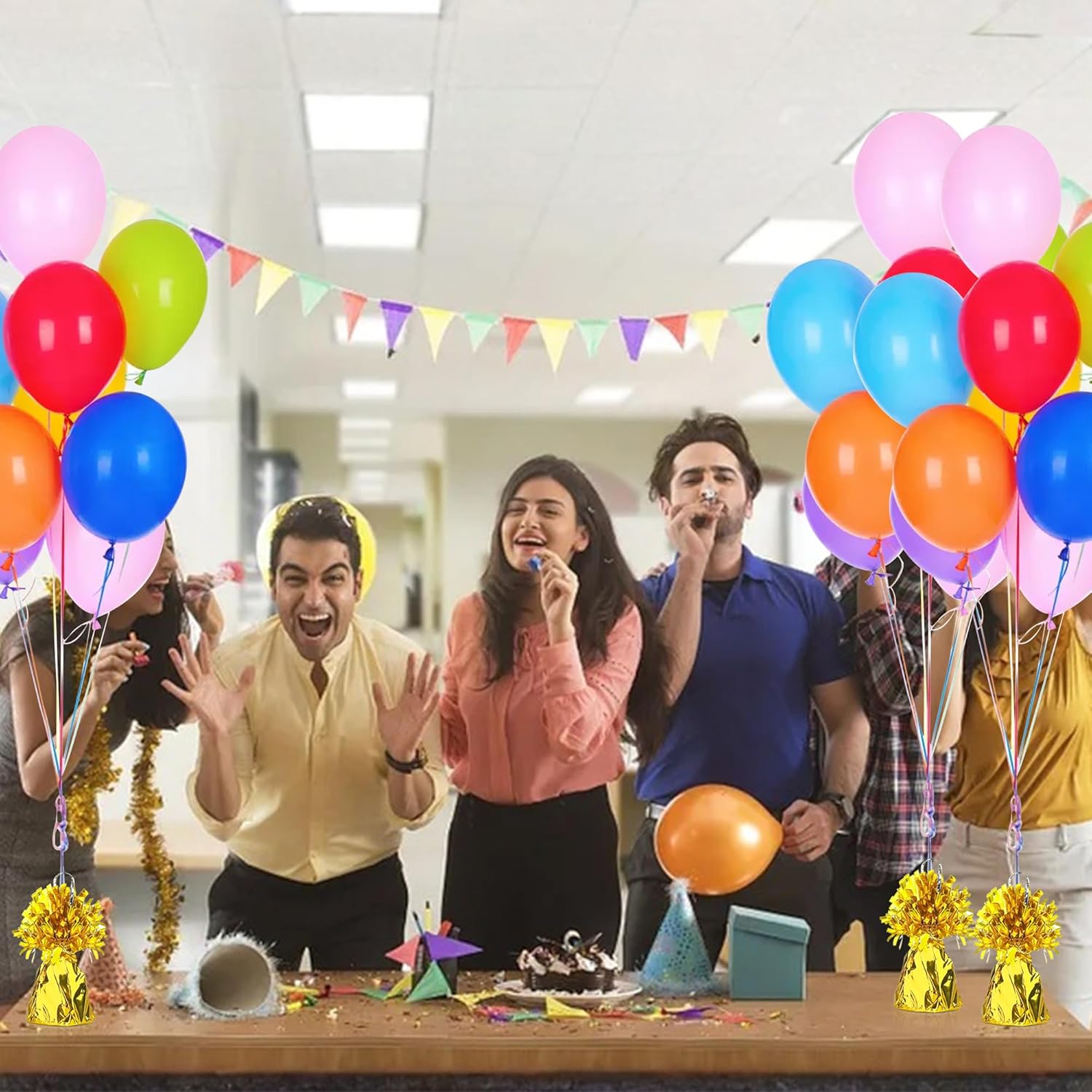 - Set of 16 Premium Balloon Weights: Includes 16 metallic weights, each providing reliable anchoring for helium balloons to keep them securely in place throughout your celebration