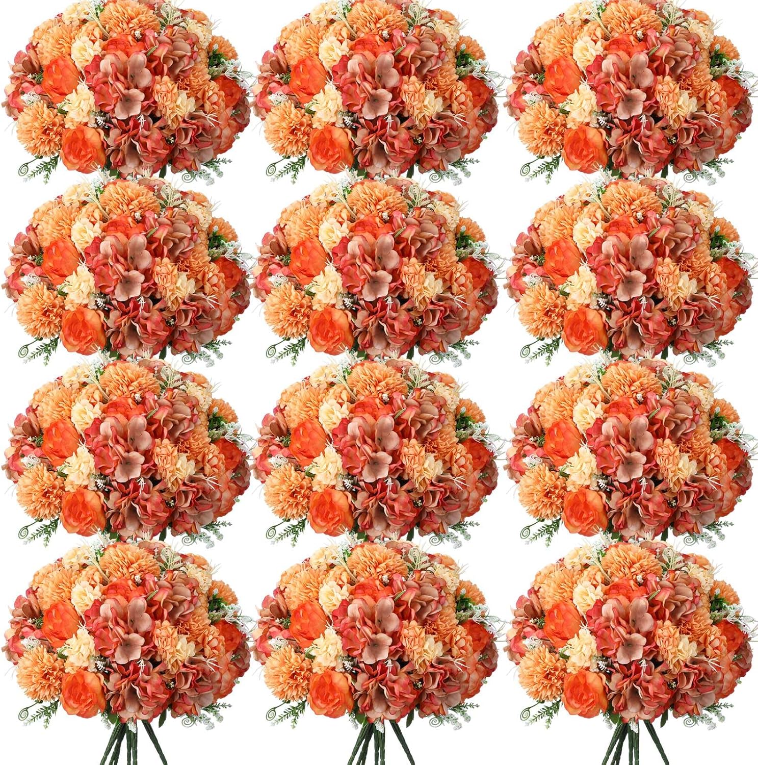 Tigeen Artificial Flowers Artificial Peonies Silk Flowers Faux Peony Fake Peony Silk Hydrangea Bouquet for Wedding Table Centerpiece Floral Vase Decor (Bright Orange,12 Bundles)