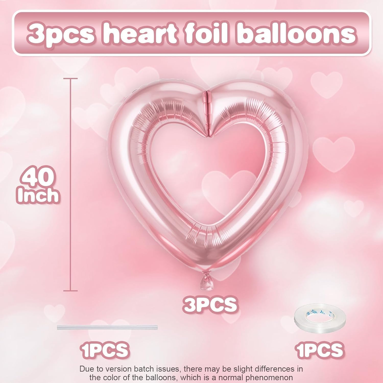 • Package: This set includes 3pcs of 40inch pink hollow out heart foil balloons,1 ribbon,and 1 straw.The generous size makes these balloons perfect for transforming any space into a festive celebration venue, whether you're decorating for a wedding arch, photo backdrop, or party centerpiece.