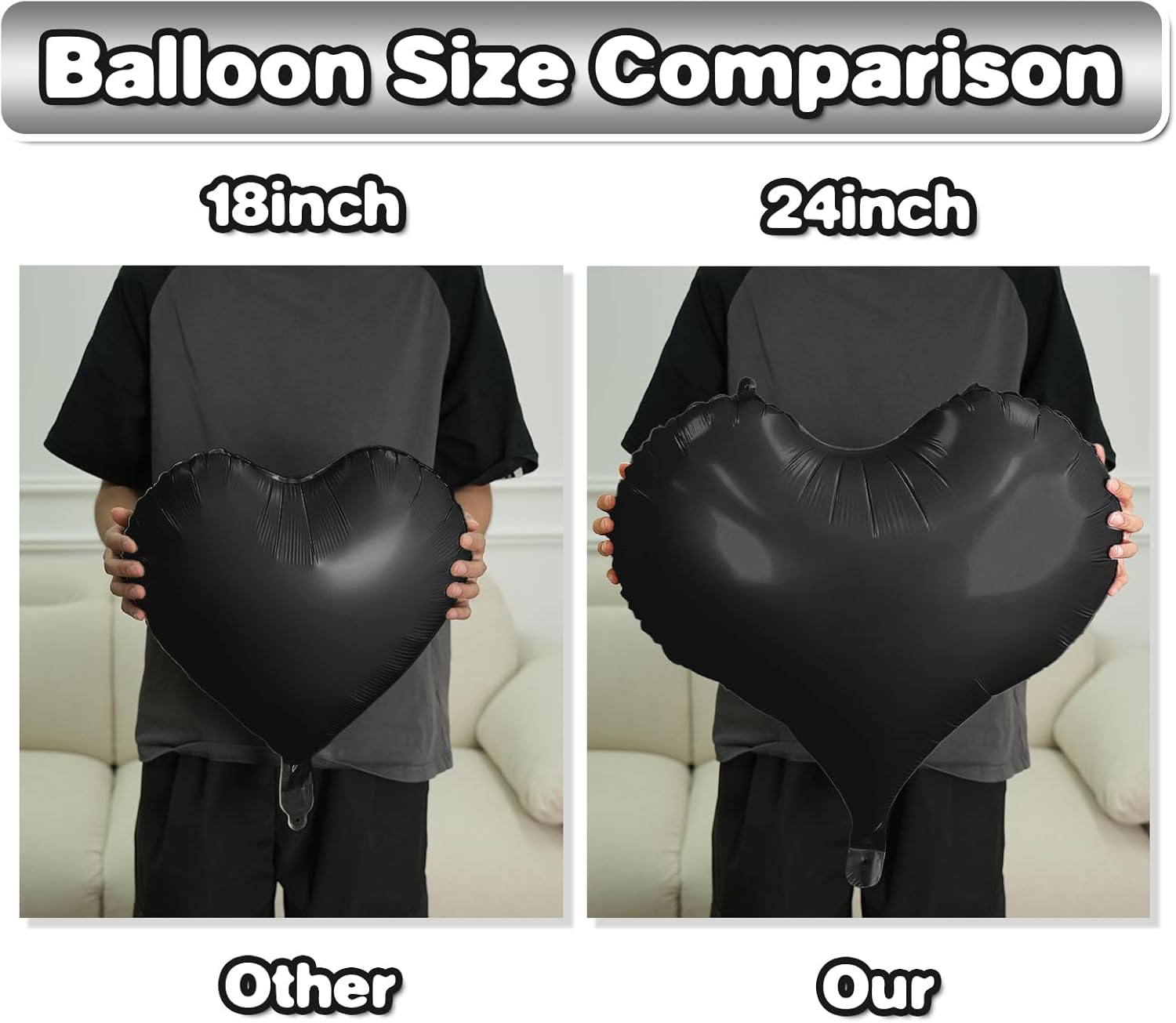• Package: This set includes 6pcs of 24inch heart foil balloons(black*3,cream white*3),1 ribbon,and 1 straw.The generous size makes these balloons perfect for transforming any space into a festive celebration venue, whether you're decorating for a wedding arch, photo backdrop, or party centerpiece.