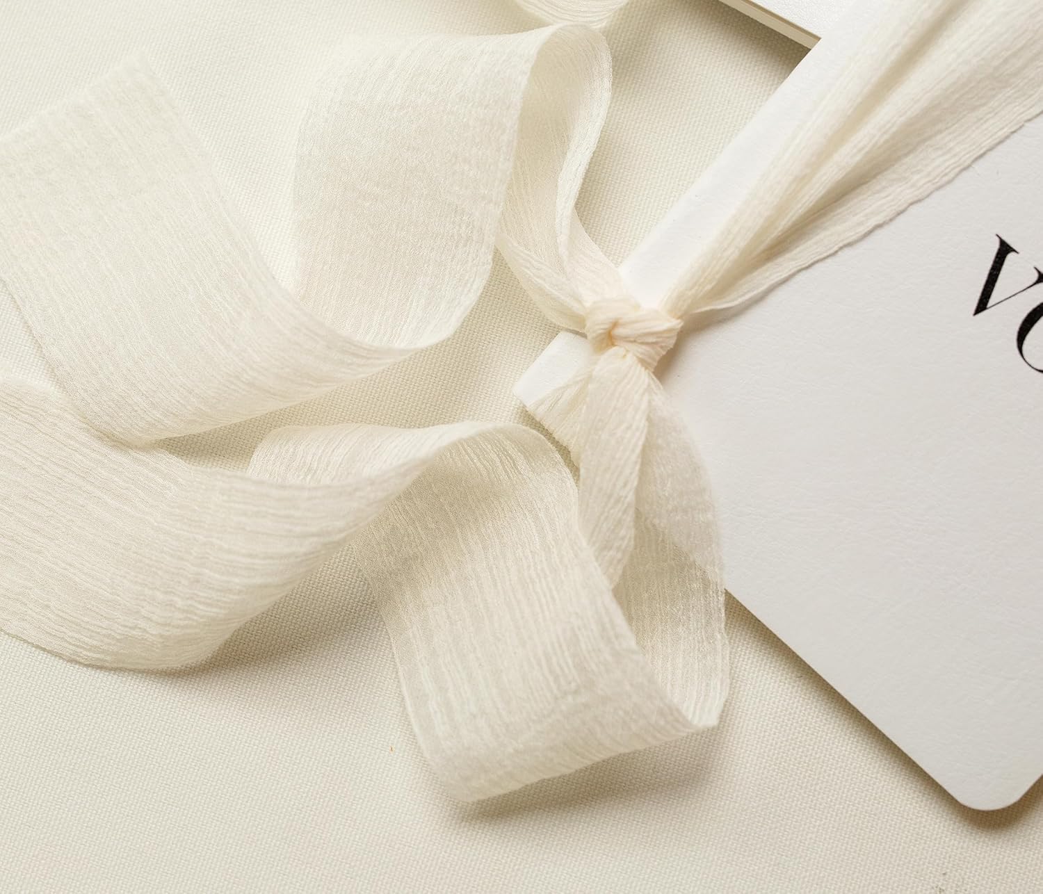 - Each vow book in our set measures 5.625 x 4 x .5 inches, making them pocket-sized for easy carrying. Crafted from high-quality materials, these softcover vow books offer durability with a sophisticated finish. The flowy ivory ribbon adds a touch of romance and softness against the texture of the book.