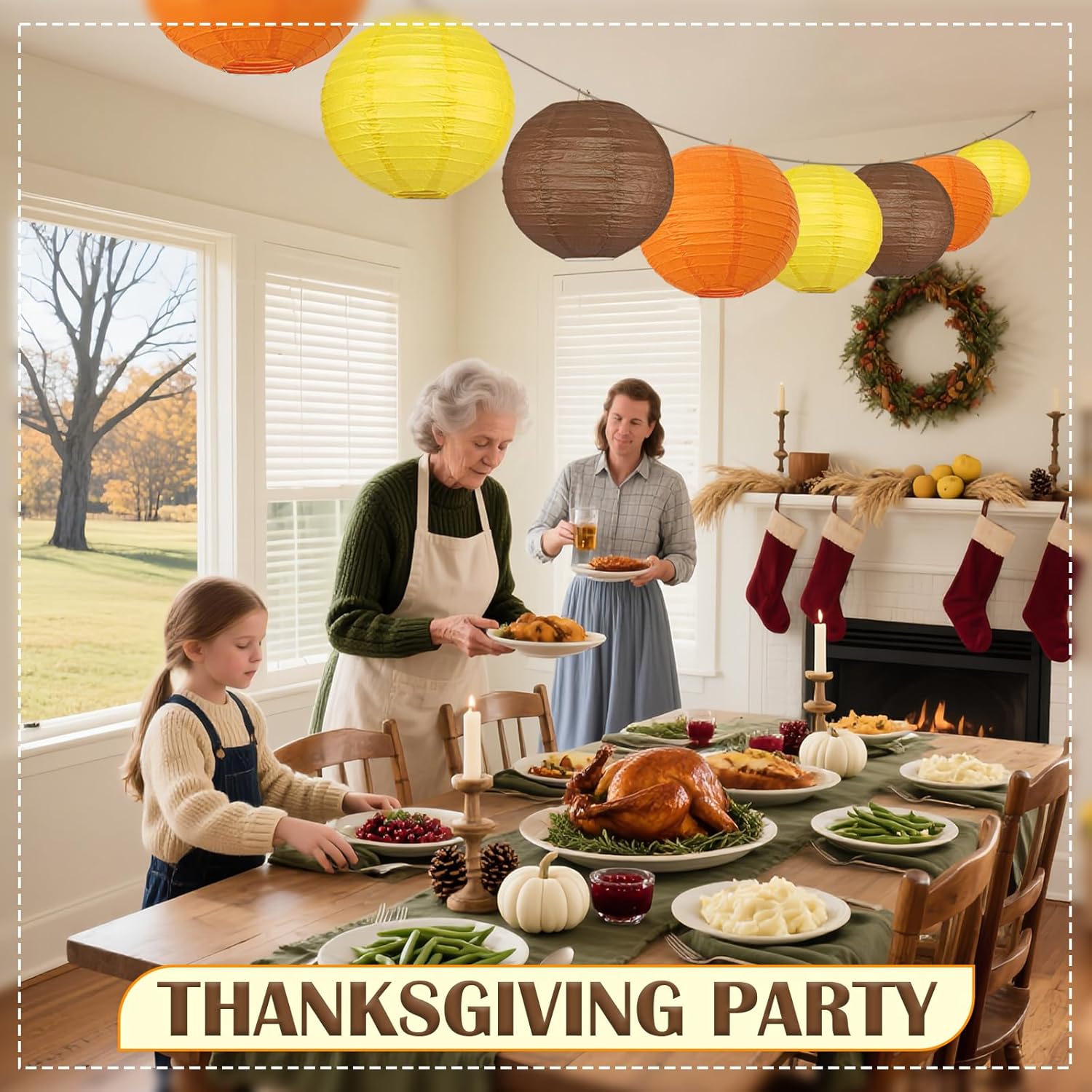 12Pcs Fall Paper Lanterns, Various Sizes (6" 8" 10" 12") Hanging Yellow Orange and Brown Paper Lanterns for Baby Shower Bridal Shower Wedding Birthday Thanksgiving Fall Party Decorations