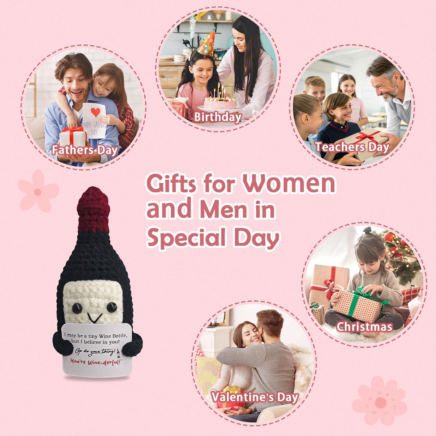 Funny Crochet Mini Wine Gift,Birthday Gift for Wine Lovers,Emotional Support Crochet,Cute Handmade Positive Crochets,Home Bar Happy Hour Accessories for Men Women Drinkers,Housewarming Gifts
