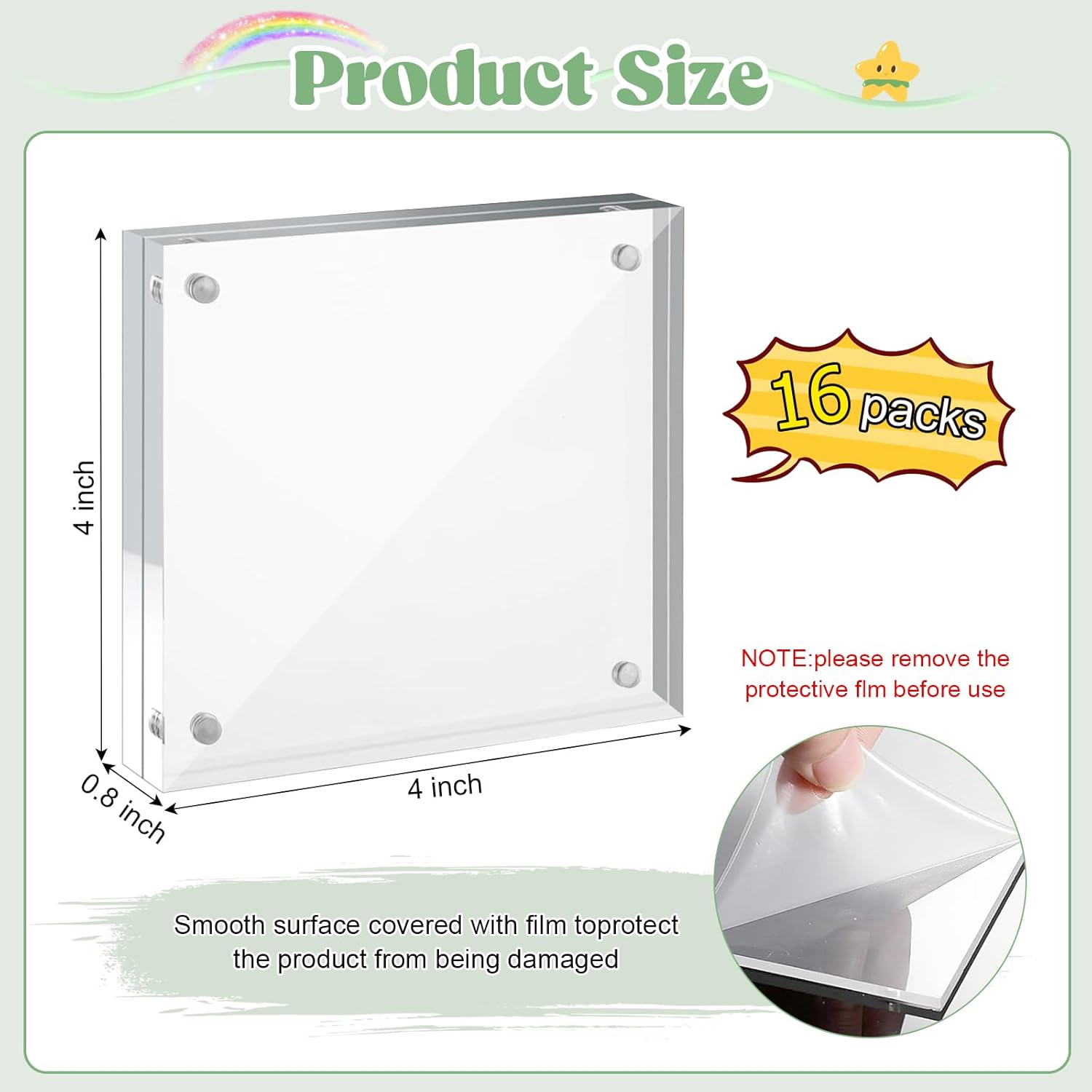 24 Pcs 4x4 Acrylic Picture Frames, Clear Picture Frames Frameless Magnetic Picture Frame Double Sided Magnetic Photo Frame Free Standing Desktop Display Stand for Bedroom Living Room Home