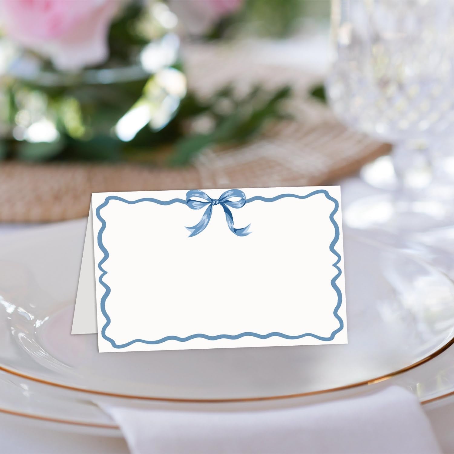 25 Pcs Blue Bow Place Cards, Blank Tent Name Cards for Food Buffet, Dinner Party, Wedding Reception, Bridal Shower Table Setting -08