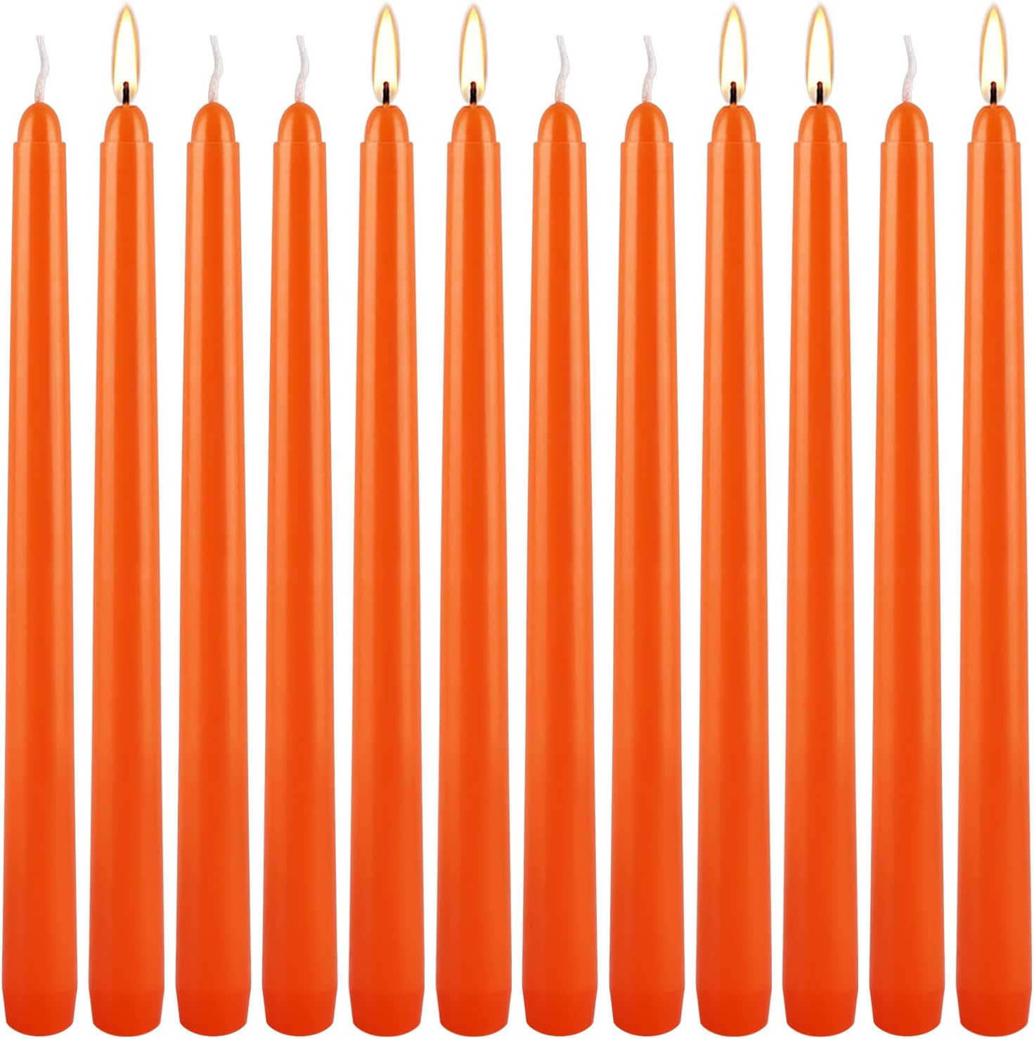 - 1. 【Premium 10-Inch Taper Candles - Set of 12】 This value pack includes 12 elegant orange taper candles measuring 10 inches tall - perfect for creating striking centerpieces and seasonal displays. Each candle burns cleanly for extended periods.