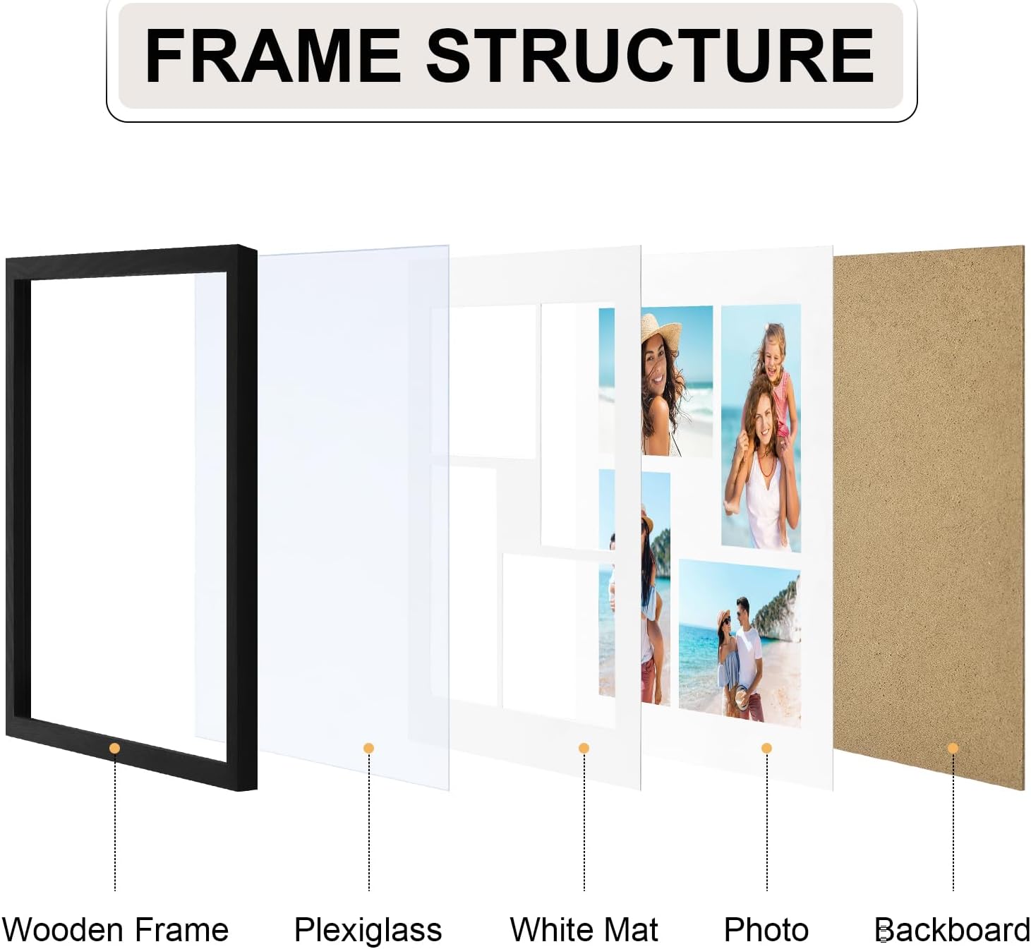 - Ease of Use: The collage frame features a quick-release back panel with flexible tabs for effortless photo switchs in seconds. Pre-installed hooks allow instant wall mounting horizontally or vertically