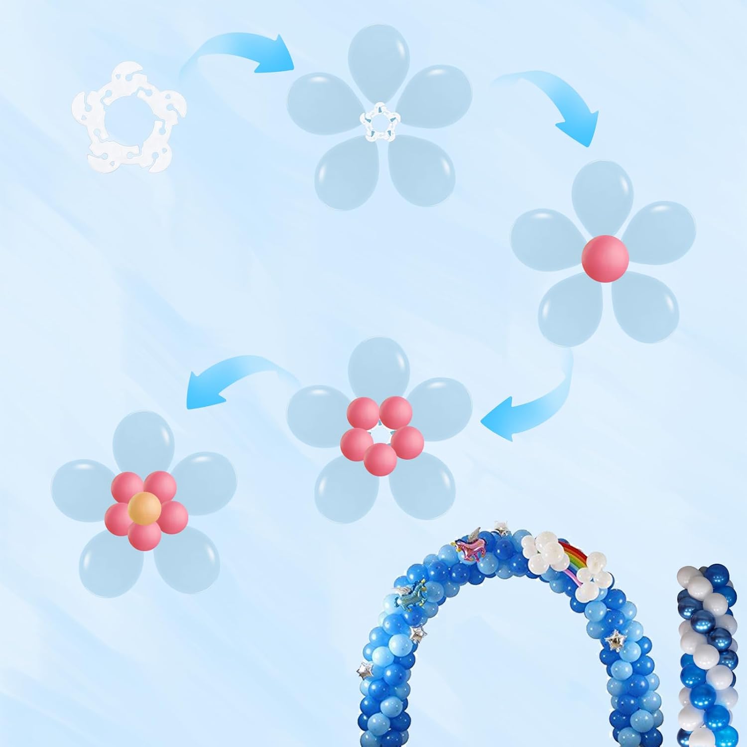 - Easy to Assemble and Use: This easy-to-assemble balloon connector allows you to quickly tie balloons together to make balloon flowers. Each clip can hold up to five balloons. Several balloon flowers can be arranged to form a beautiful arch.