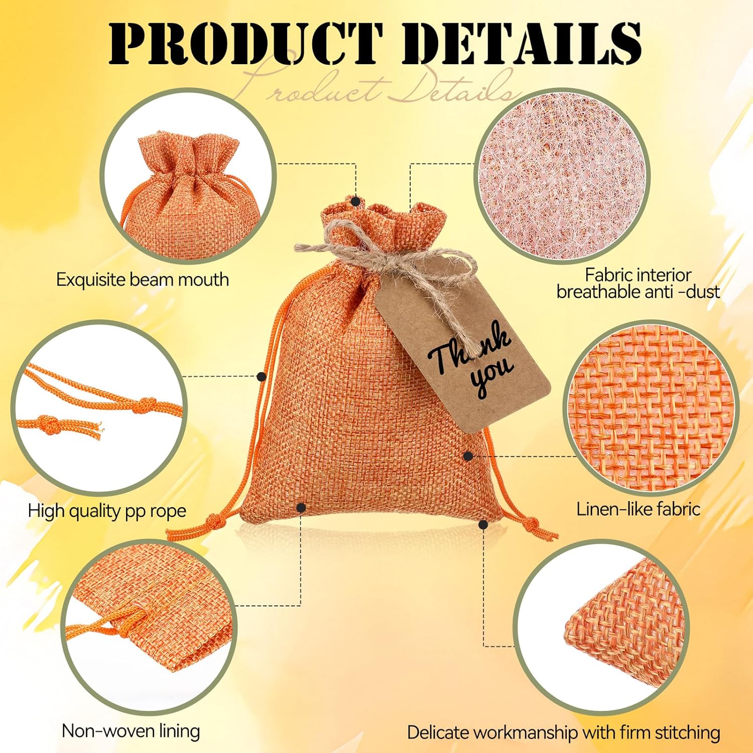 - Reusable and Breathable: these burlap bags with drawstring are made of burlap materials, which are reliable, washable and reusable; The bag is designed with many breathable micro holes to allow air to circulate; The gift tag is made of 300g kraft paper, with smooth surface for writing easily, you can use them with confidence