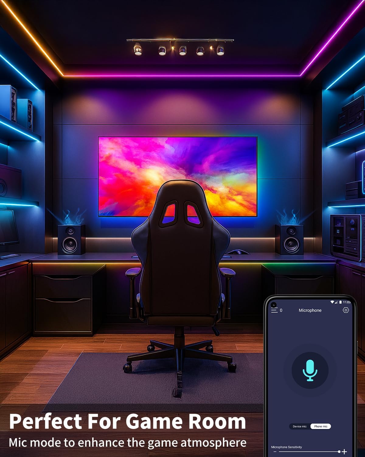 - MUSIC SYNC MODE: The strip light has a smart Music Mode , allowing led lights to change colors in sync with the music. You can also choose 22 unique patterns. Each mode can be applied to different scenes, and everything is under control!