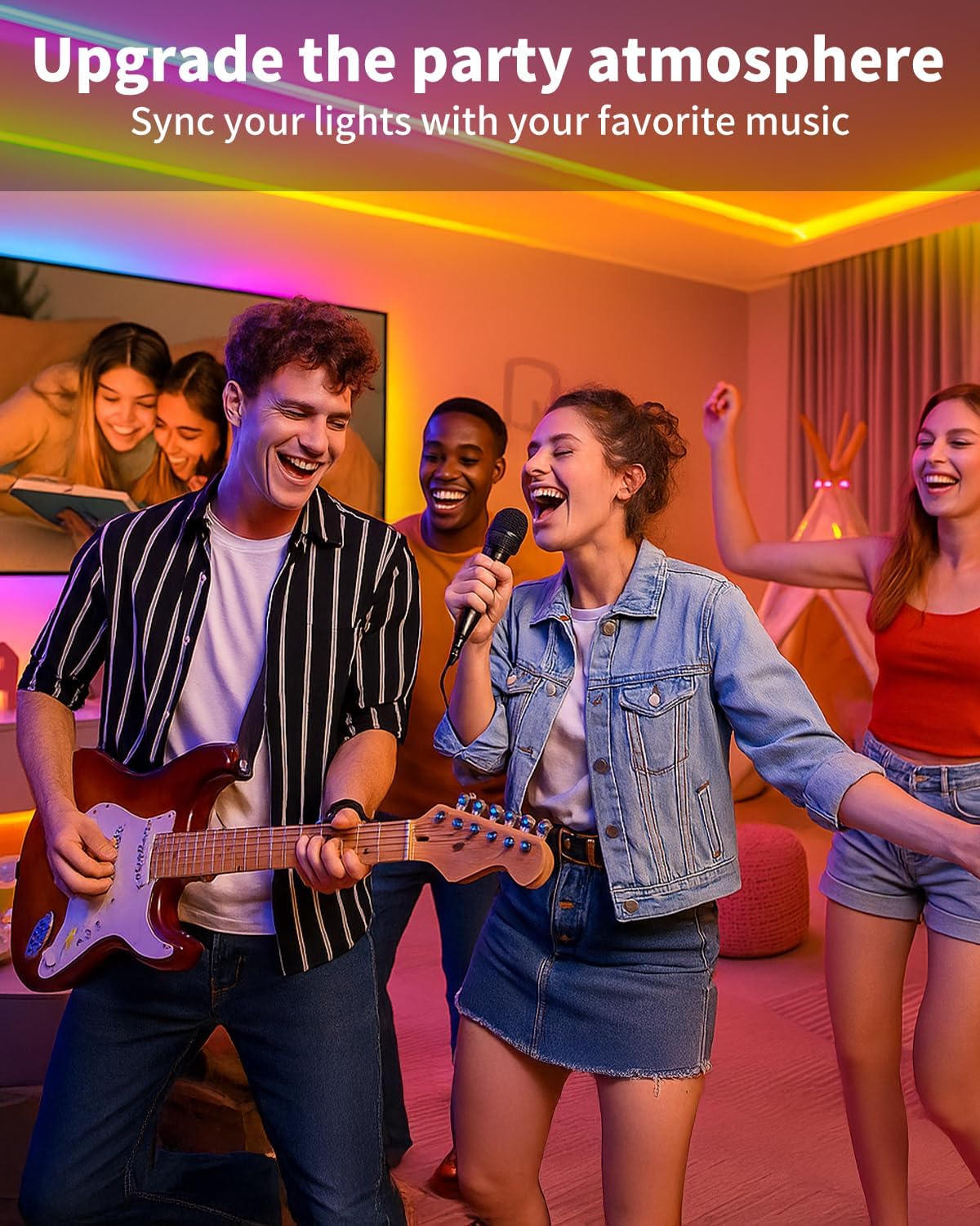 Smart LED Strip Lights 100FT for Bedroom App Control Lighting Bedroom Rome Decor with Remote, RGB Music Sync Color Changing LED Lights for Party,Game Room
