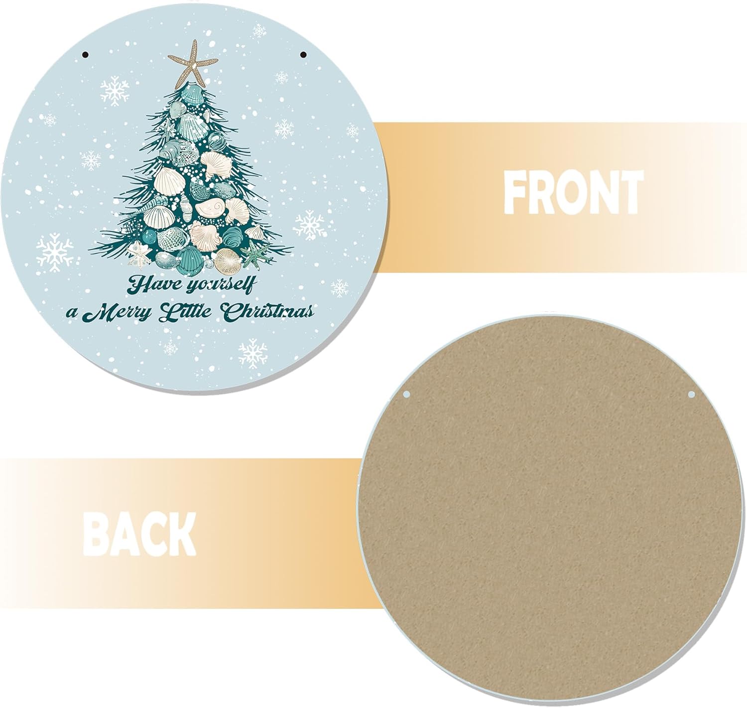 CGBHW Coastal Christmas Tree Wooden Sign, Ocean Coastal Holiday Christmas Xmas Beach Hanging Sign Wall Decor, Have yourself a Merry Little Christmas Tree Shell Beach Home Door Decor 12 x 6 Inch