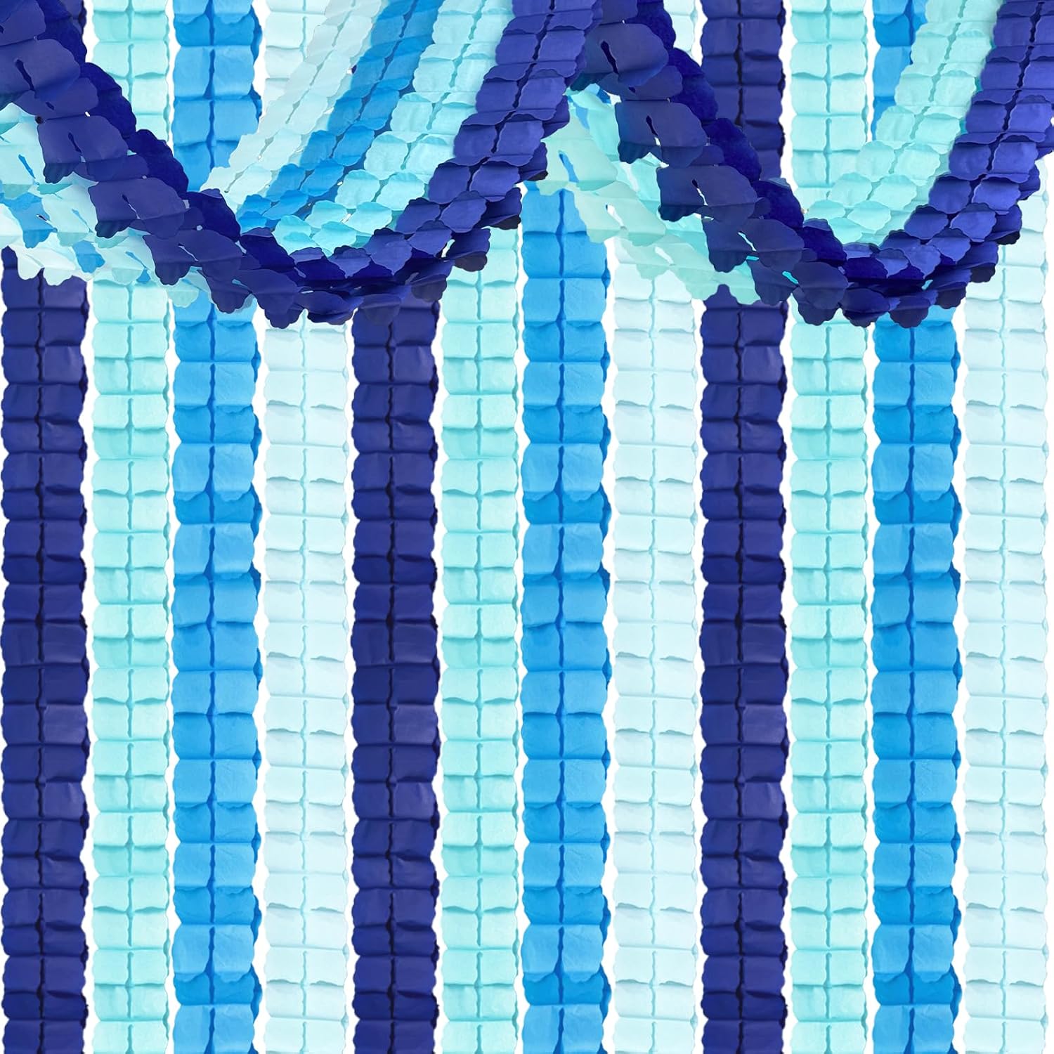 - 【Material】: Our blue streamers are made of quality thin paper. They have enough volume and size that quickly covers your space. They can be set up in anyway since they turn and twist so well. And the weight was easy to support with tape. Each strand is separate, so you can arrange the colors the way you would like them.