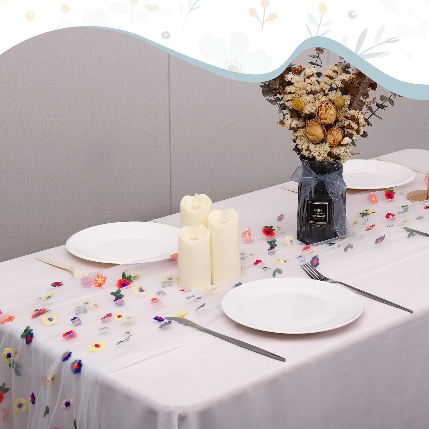 - Exquisite Design: These floral table runner featuring a delicate floral design, it gracefully drapes over the edge of the table, adding a soft and sleek touch to the decor, leaving a lasting impression.