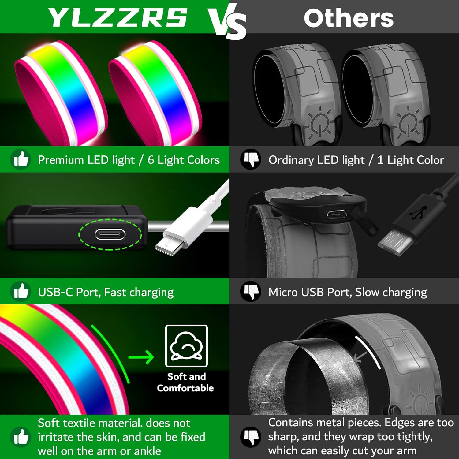 - 【Dual Protection: LED + Reflective Strip】Unlike standard armbands, ours features super-bright reflective strips that glow intensely when hit by car headlights—even if the LED battery dies . Reflective material ensures all-weather visibility, perfect for high-traffic areas or low-light conditions.