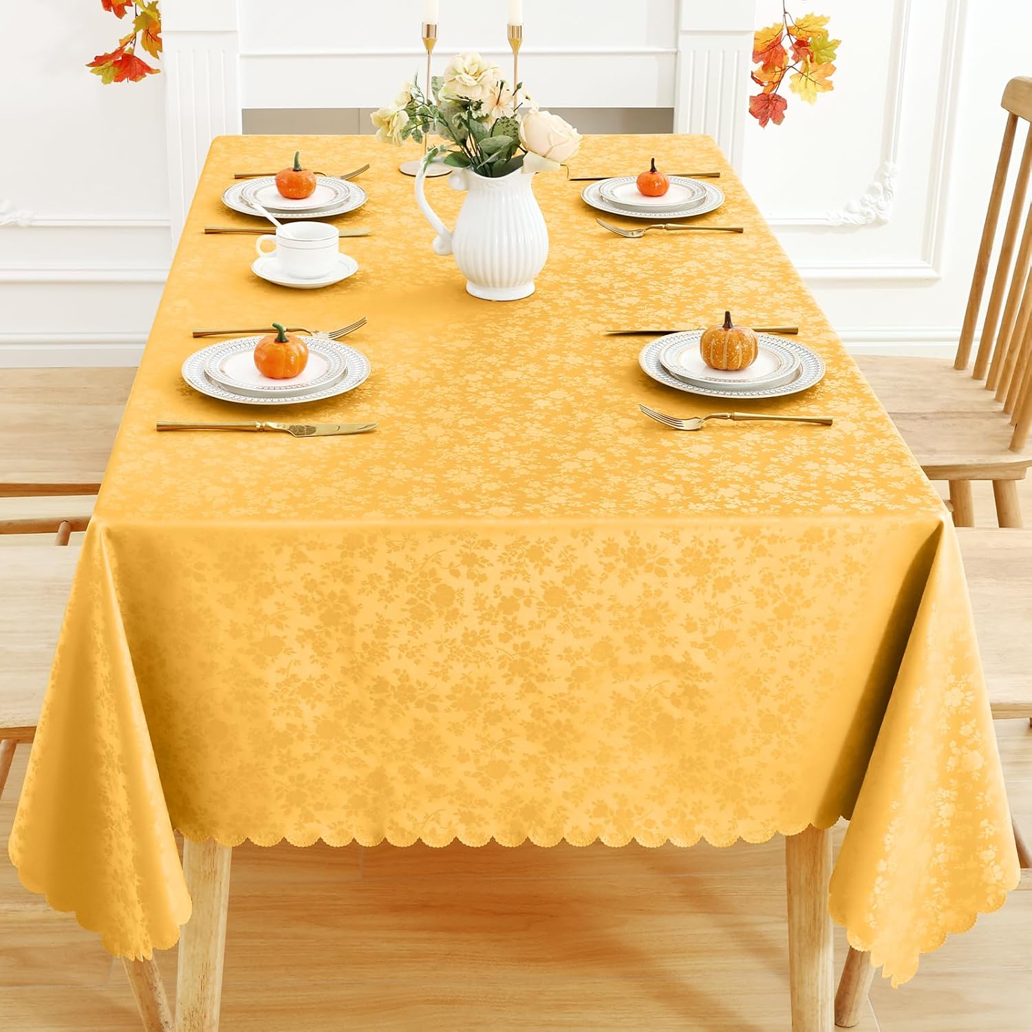 Smiry Rectangle Table Cloth, Waterproof Heavy Duty Vinyl Tablecloths, Wipeable Washable Table Cover for Kitchen and Dining Room (Mustard Yellow, 60" X 84")