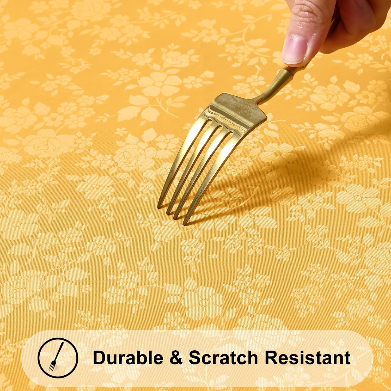 - [Elegant Vinyl Tablecloth] Featuring floral embossed tablecloth with pretty scalloped edges, nice warm tone and soft touch add an elegant touch to these tablecloths, they are suited for light up your fancy dinner.