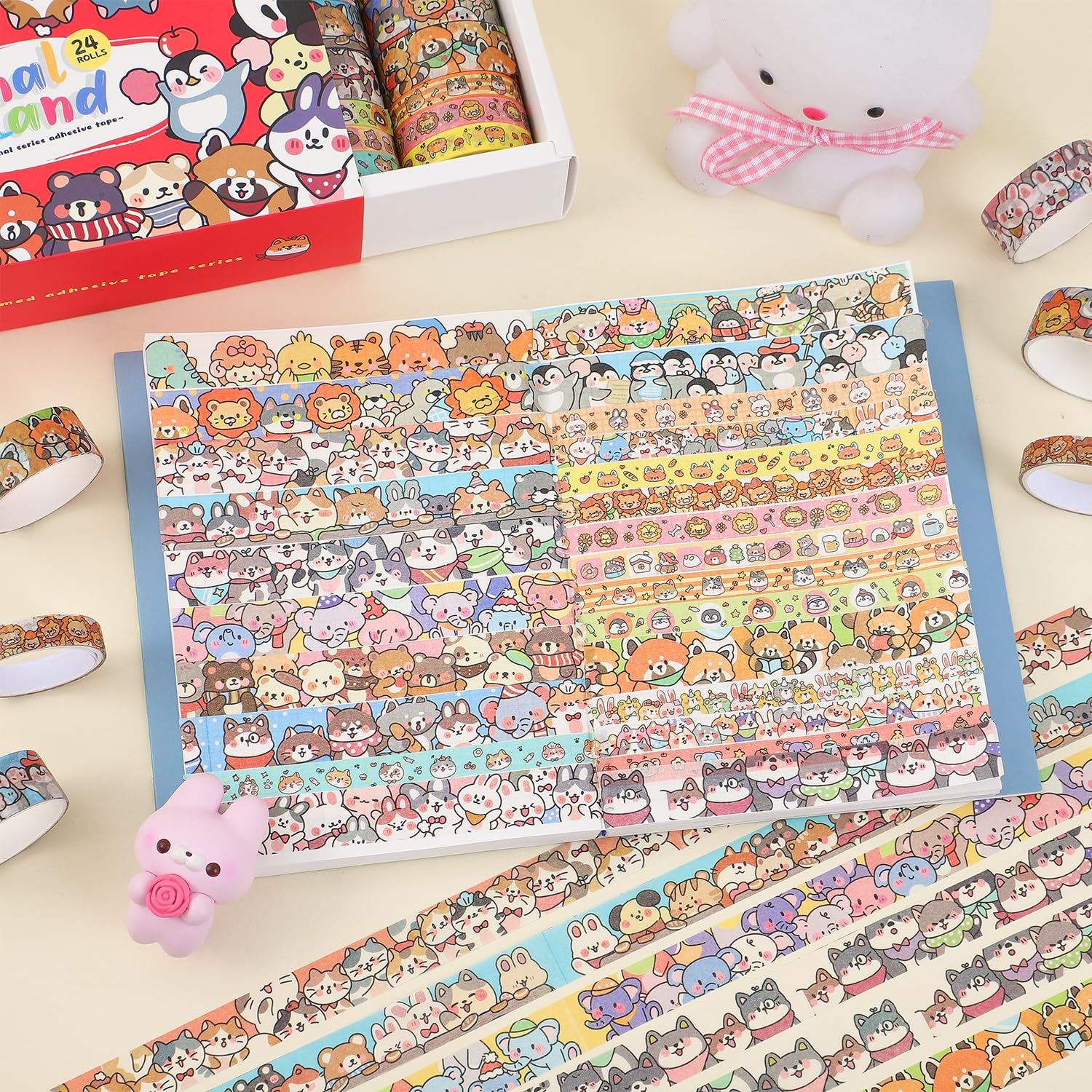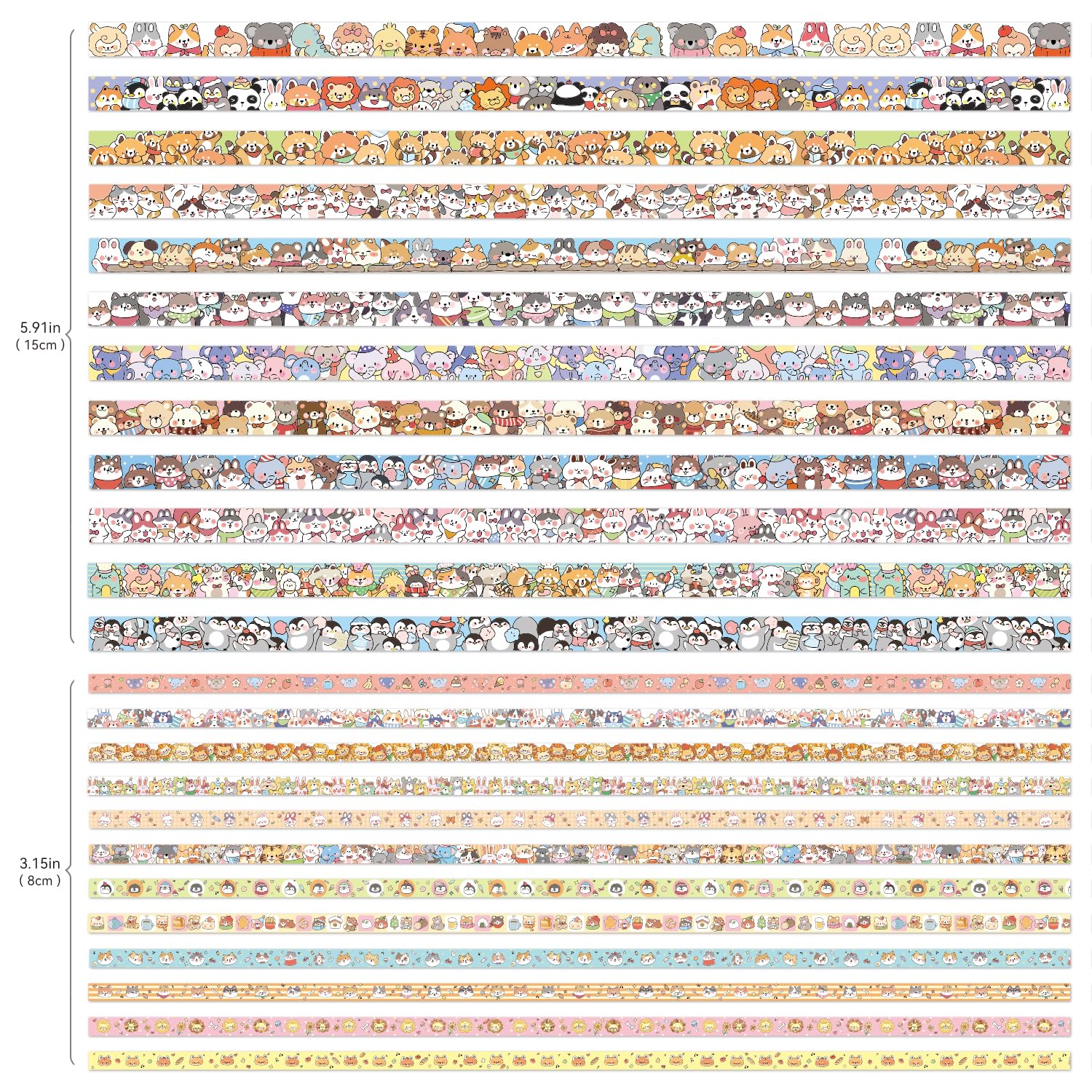 24 Rolls Colorful Cute Cartoon Animal Writable Washi Tape Set, Decorative Tapes for Scrapbooking and Journaling, Junk Journal Supplies, Bullet Journaling for Women Girl 8-15mm Wide 9.84ft Long/Roll
