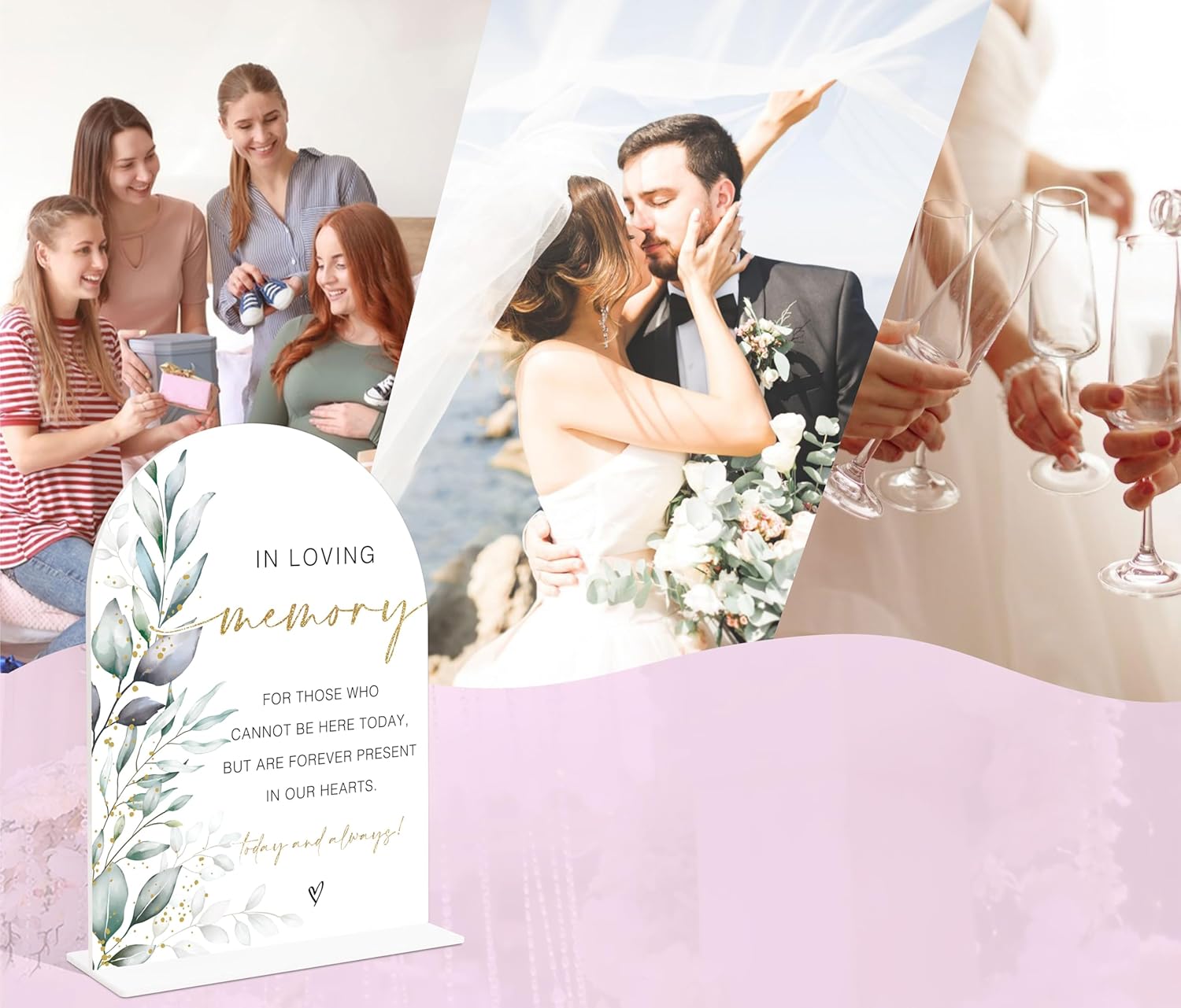 Acrylic Wedding Signs, Greenery Theme In Loving Memory, Memorial Table Sign for Wedding, Bridal Shower Table Decor with Stand, Engagement, Anniversary, Newlywed Events and Parties Supplies, 23