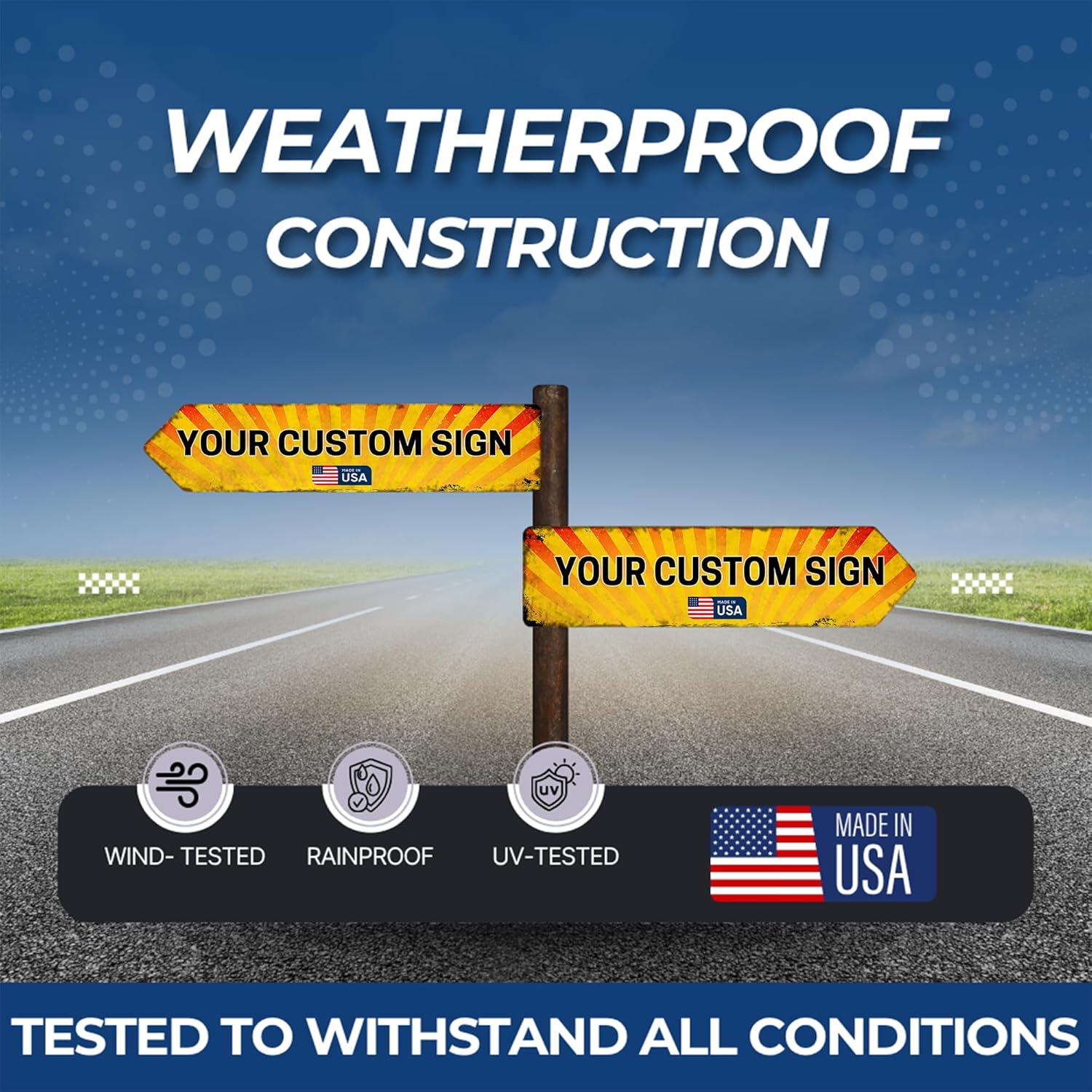 - CUSTOM Compact Size: β Perfect for guiding traffic or marking directional flow; ideal for use as CUSTOM metal yard signs, CUSTOM metal street signs, or custom street signs metal.