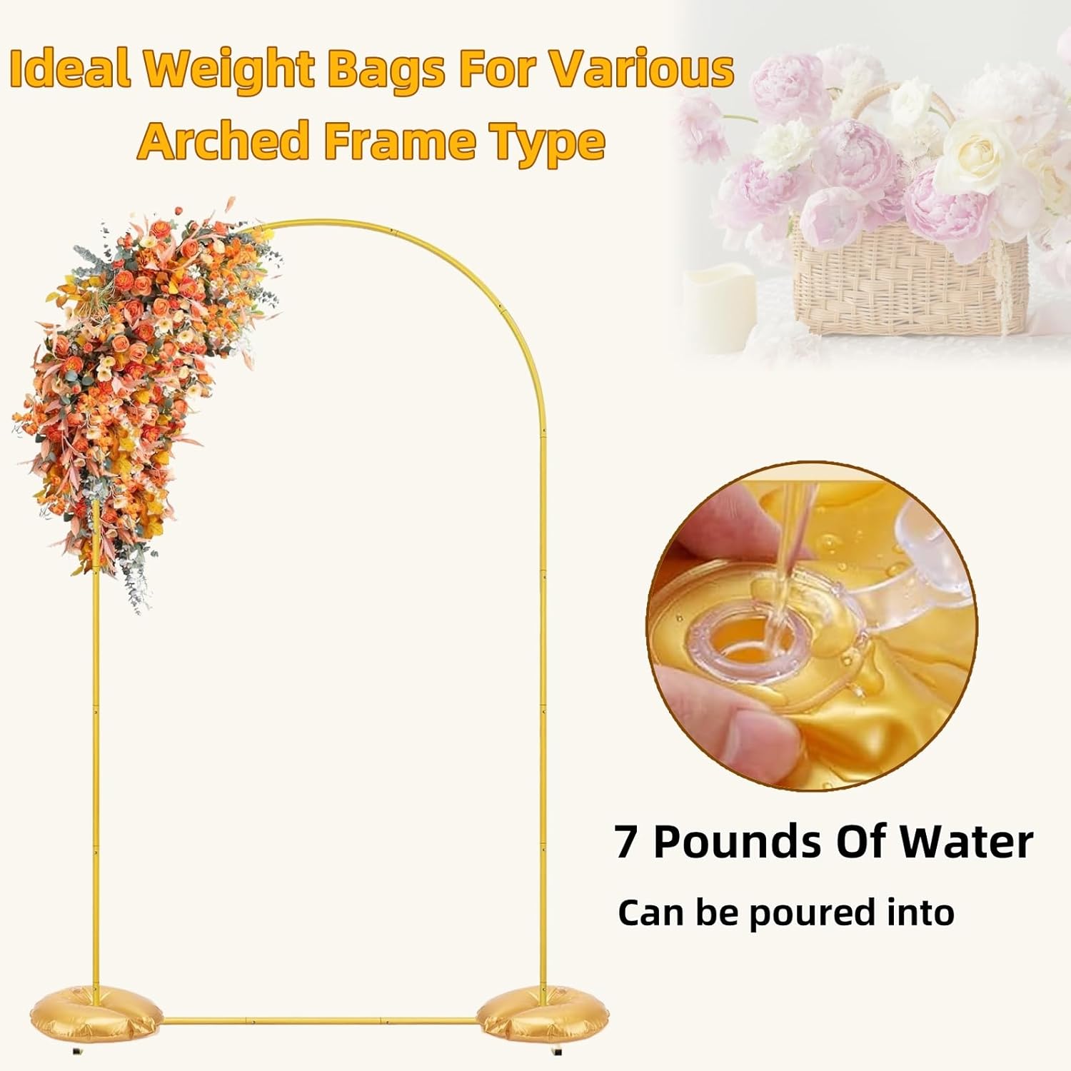 - ✅【10 Pack Gold Water Weight Bags for Arch Stand Base】 Includes 10 heavy-duty gold water bags, ideal for balloon arch stands, backdrop frames, or party sign holders. Designed to improve overall stability and prevent tipping during indoor or outdoor events.