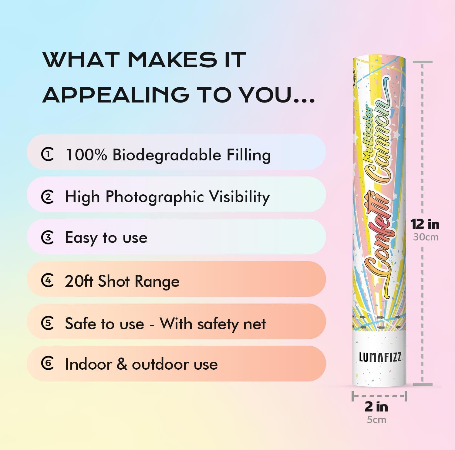 12 InchConfetti Biodegradable [6 Pack Confetti Cannons | Multicolor Confetti Poppers for Wedding Celebration, Birthday Party Christmas Eve and New Year Celebration (Dopamine color)