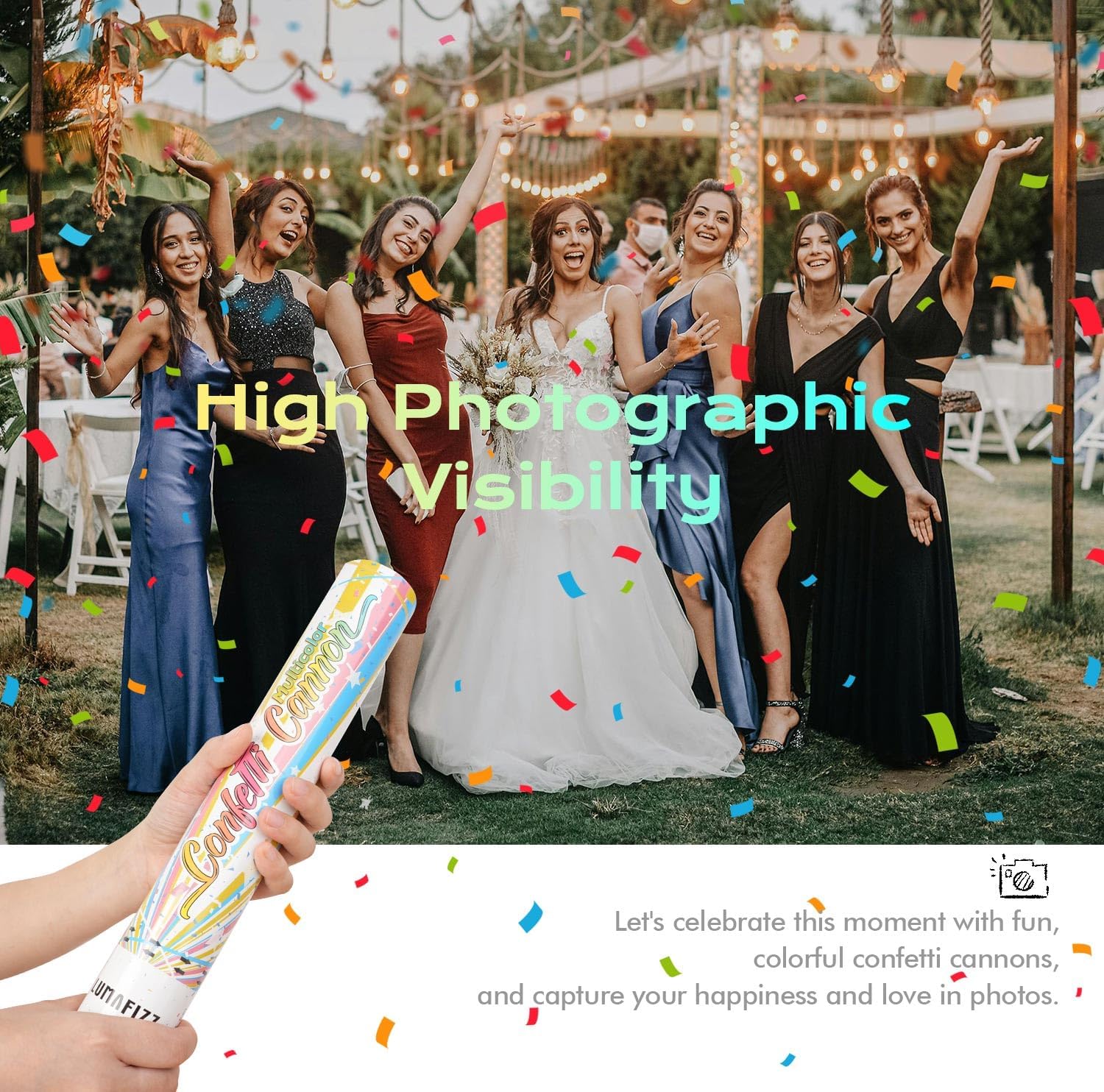- 【PERFORMANCE】Engineered for spectacle. Each Confetti Cannon is max-loaded with ultra-light, color-saturated Confetti that rockets upward to an ideal 12-foot apex—then hangs like slow-motion fireworks before cascading down as a picture-perfect Confetti curtain. Whether under open sky or a high ballroom ceiling, you get the ultimate “golden-hour Confetti snowfall” moment, every single time.