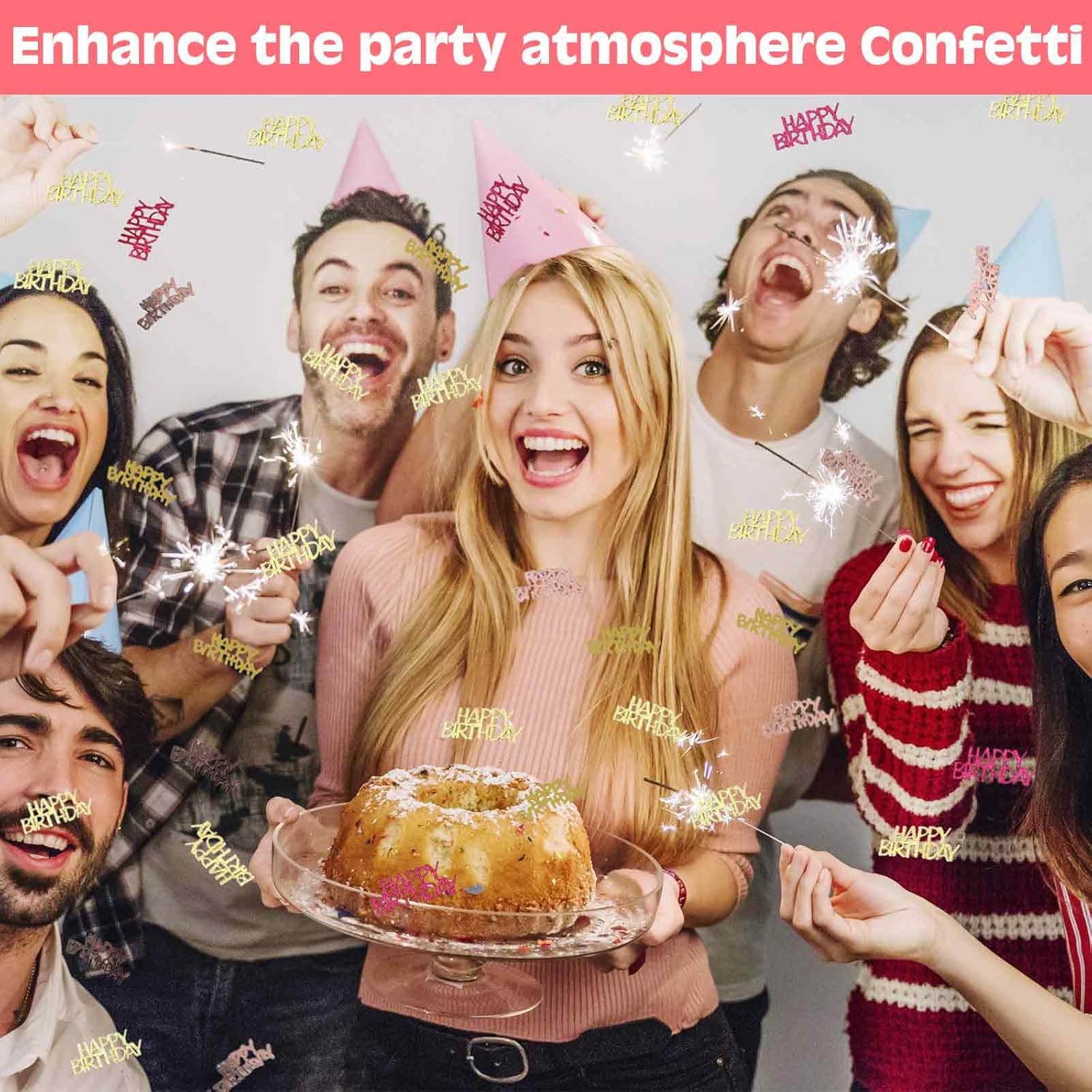 560 PCS Glitter Happy Birthday Confetti, Rose Gold Table Decorations, Iridescent Metallic Foil for DIY Crafts Festive Table Decoration