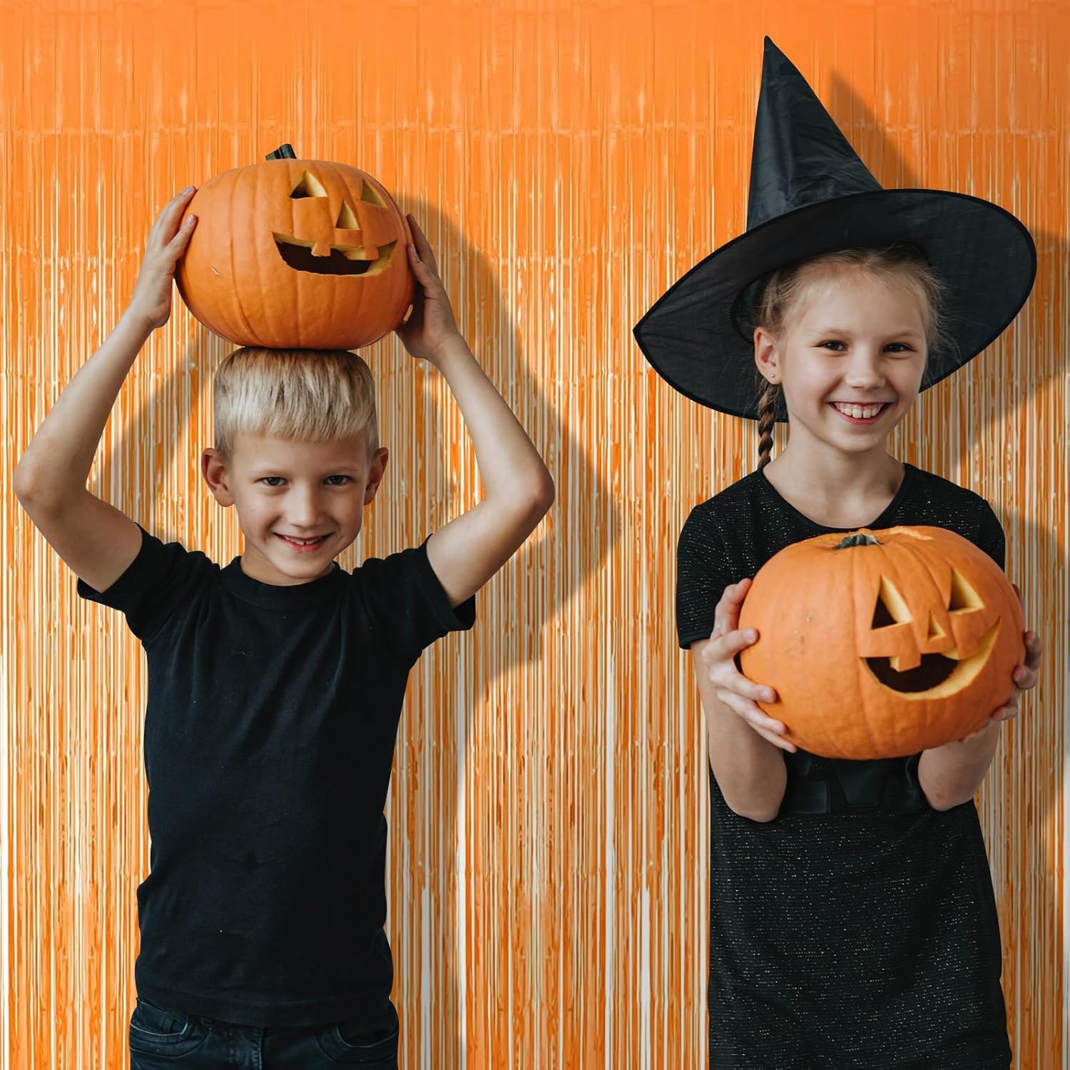 10 Pack Orange Foil Curtain Backdrop 3.2ft x 8.2ft Macaron Tinsel Foil Fringe Curtains Streamer Photo Booth Backdrop for Birthday Party Baby Shower Engagement Wedding Holiday Decor (Macaron Orange)
