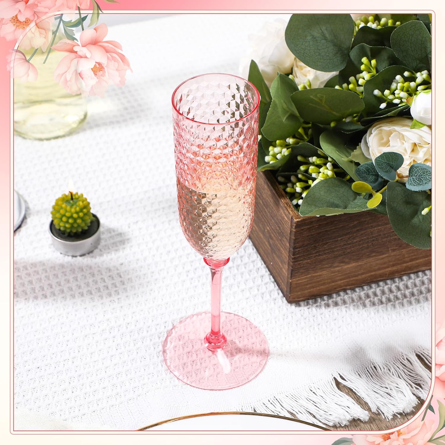 - Classy Diamond Pattern Design: Featuring a beautifully embossed diamond texture, these mimosa glasses plastic blend classic charm with a modern aesthetic; Whether it's a bridal shower, engagement toast, or romantic dinner, these plastic toasting glasses effortlessly set the mood, transforming ordinary moments into unforgettable experiences