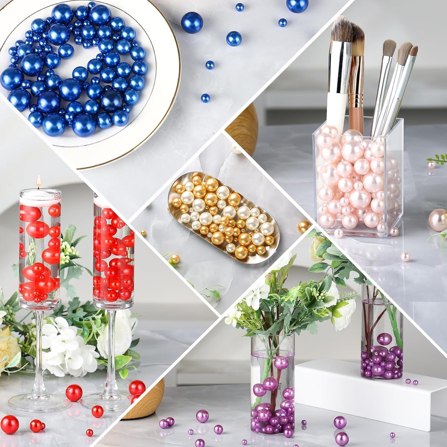- Multi-Size Pearl Beads - Includes 260pcs metallic red&white pearl beads in three versatile sizes (6mm, 14mm, 18mm) for dynamic layering and a luxurious effect in vases or bowls