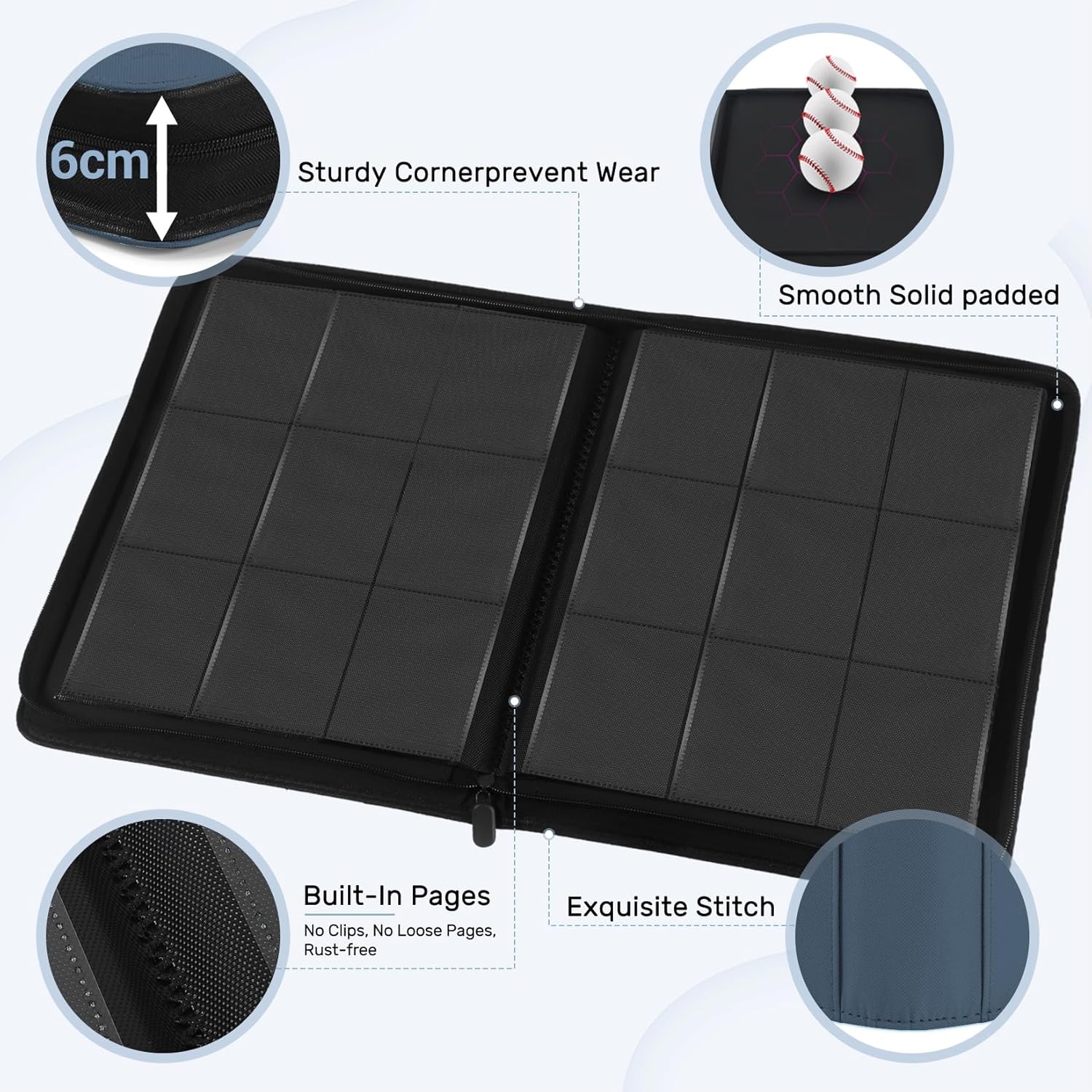 - Maximum Protection: Designed with thickly padded, ultra rigid exterior case to prevent card bending, and durable zipper for further protection from dust and dirt. This water-resistant card binder with premium PU textured faux leather offers trusted durability and superior security for your cards.