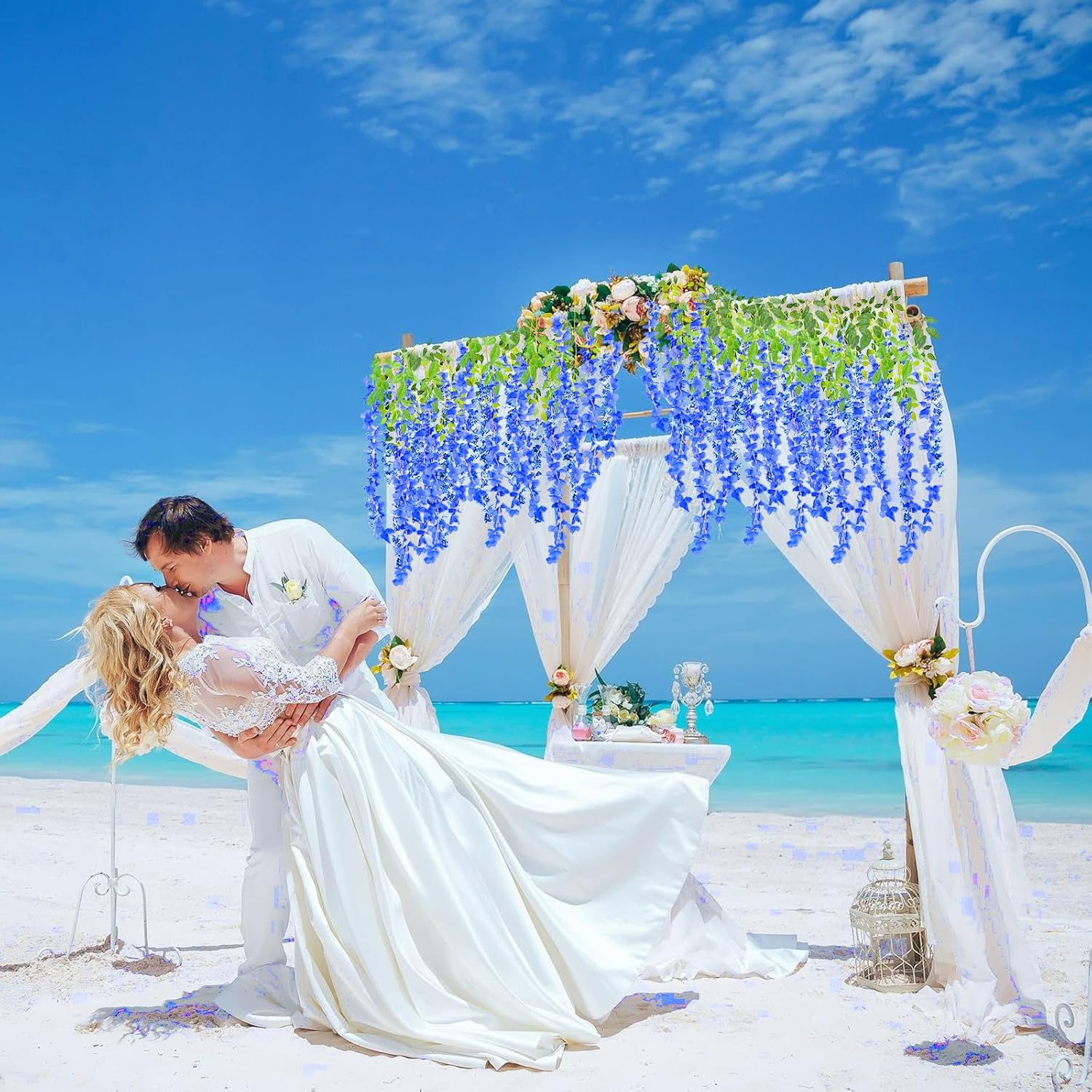 36 Pack Royal Blue Wisteria Hanging Flowers, 3.44 Ft Fake Hanging Flowers, Artificial Wisteria Garland Vines for Wedding Room Backdrop Outdoor Patio Garden Decoration
