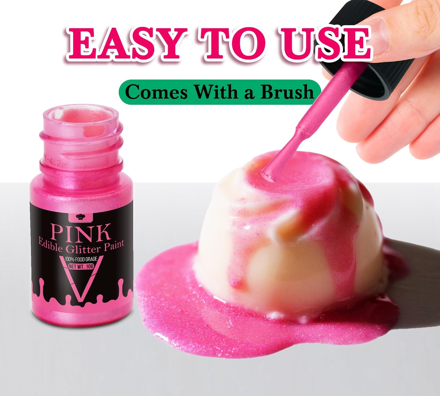 - Brilliant Metallic Effects with Edible Paint: Create stunning high luster finishes on cakes, chocolates, drink and desserts using our edible paint and liquid food coloring. This food safe edible paint delivers brilliant metallic shimmer without altering taste, perfect for professional bakers and DIY enthusiasts seeking a luxurious touch.