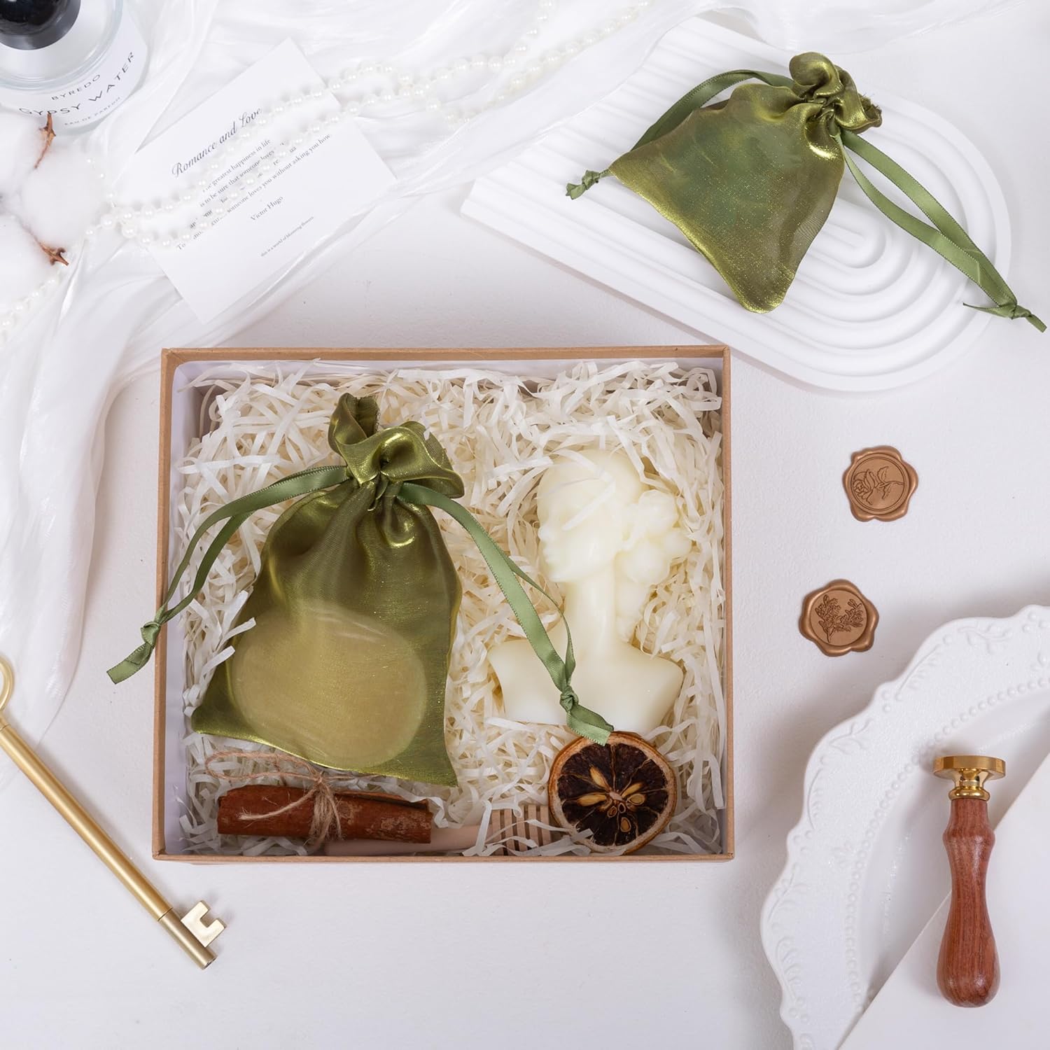 QIANF 20 Pcs Moss Green Small Organza Bags 4X6 inch for Wedding Favors with Drawstring, Mini Mesh Gift Bags Jewelry Pouch for Candy Bridal Shower Party Favor Baby Shower Christmas