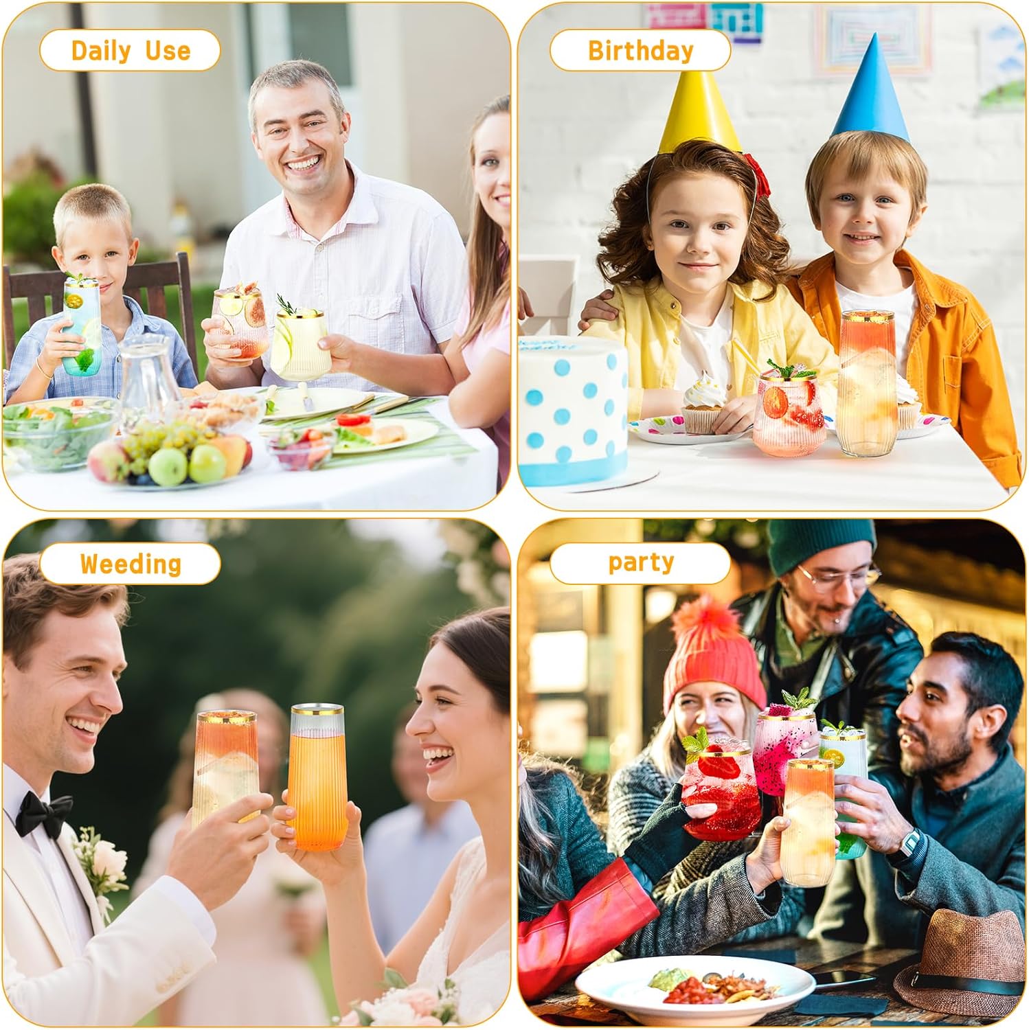 - 【Versatile Usage】These plastic stemless wine glasses bulk are perfect for a wide range of beverages, including champagne, wine, juice, whiskey, drinks, cocktails, water, various mixed drinks and more. Ideal for indoor and outdoor functions, home, office, bars, weddings, catering, barbecues, birthday parties