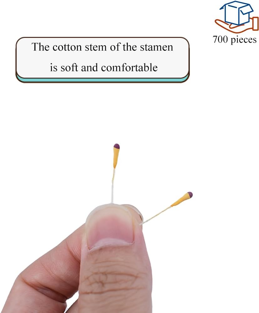 - Packing: 700 pieces per package. You will receive 700 carefully packed artificial flower stamens, which are realistic, finely crafted, and safe for use in various crafting projects. Use our Flower Pollen Stamens and add them to your cart to make your own handmade flowers or add them to pre-made bouquets for a professional touch!