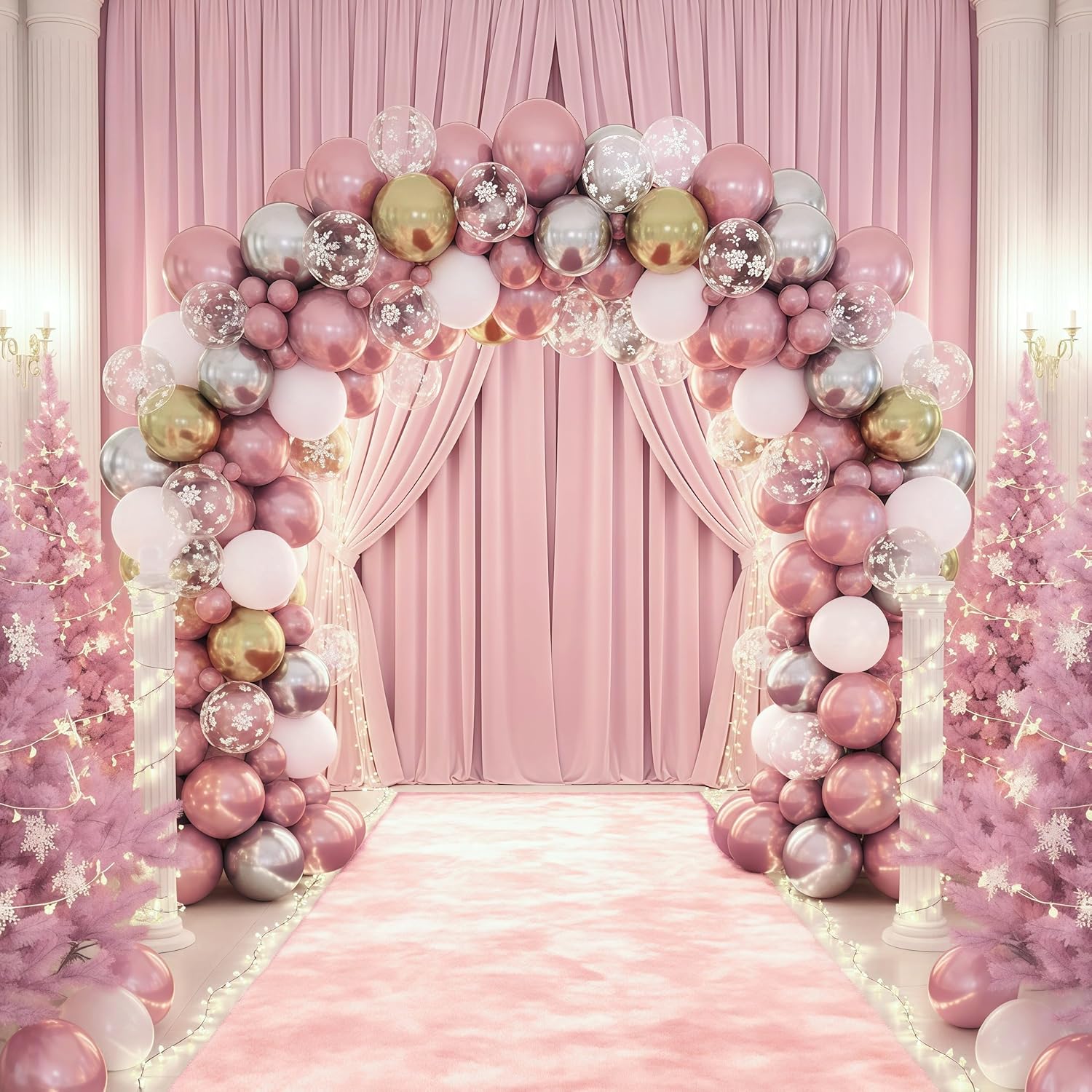 - Perfect for Winter Celebrations β Create stunning pink white gold balloon garlands, bouquets, or table centerpieces for Christmas, winter birthdays, New Yearβs Eve, snow princess theme party decor and winter wonderland weddings.