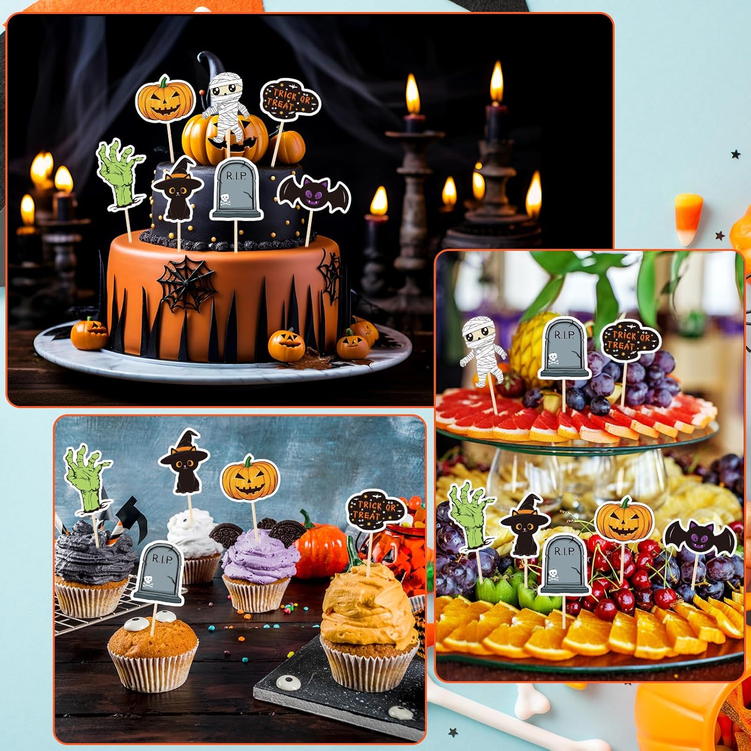 NACHLYNN 70pcs Halloween Cupcake Toppers Spooky Haunted House Night Party Fruit Cake Decoration Favors