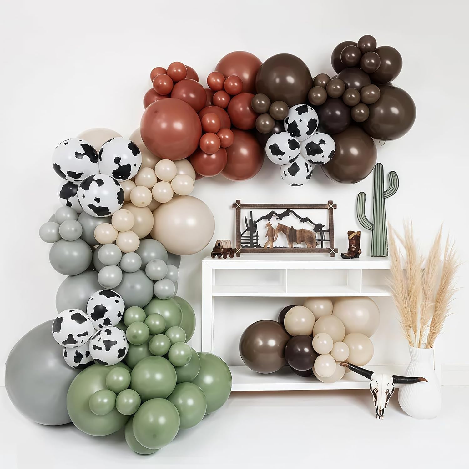 - Complete Cowboy Balloon Set: This 12inch 35pcs set includes 7pcs retro brown balloons, 7pcs coffee brown balloons, 5pcs cow balloons, 8pcs slate blue balloons, 8pcs sand white balloons, and 1 ribbon. Perfect for western themed party decorations, cowboy party decorations, or rodeo party decorations.