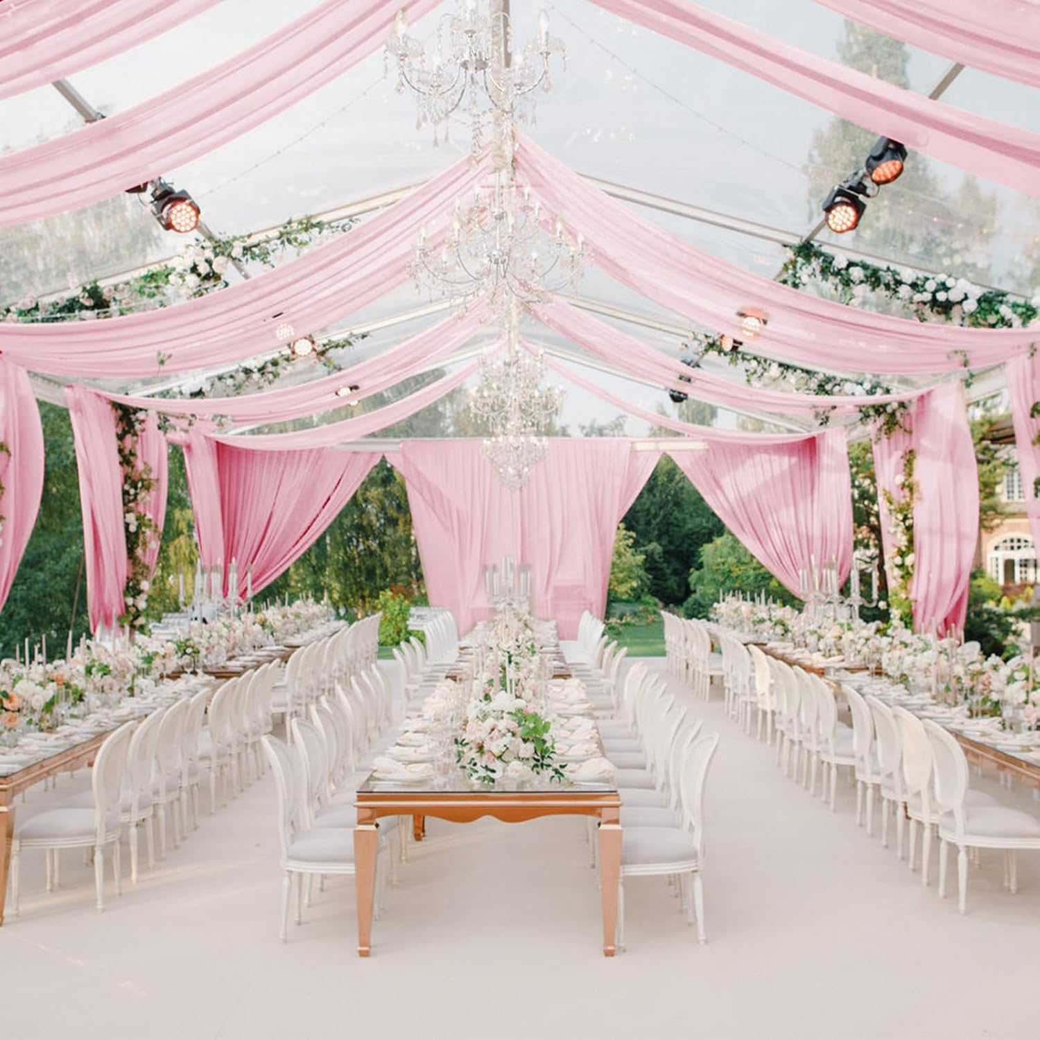 VOK Pink Wedding Arch Draping Fabric Chiffon Curtains, 29in x 18Ft Sheer Chiffon Outdoor Curtain for Wedding Ceremony Birthday Party Decoration (Light Pink,4 Panel)