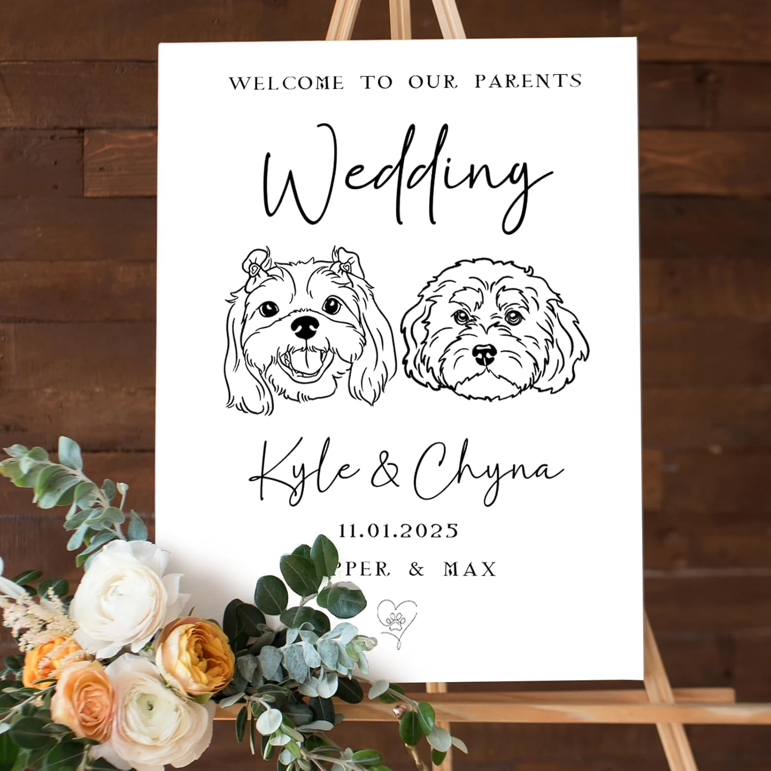 Personalized Pet Wedding Welcome Sign Using Pet Photo, Custom Dog Cat Welcome To Our Wedding Signage Drawing, Custom Gifts for Weddings, Christmas, Engagement Party, Anniversary,