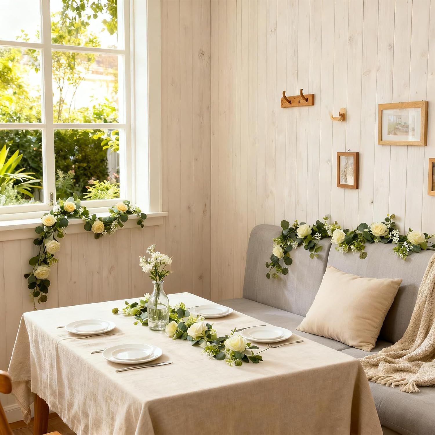 - Upgraded Fuller Wreath: Each pack contains 2 artificial rose garlands, each measuring 5.9 feet in length with 6 white roses. Each rose is approximately 4 inches wide. Enhance the fullness and realism of the rose heads with our meticulously crafted white floral garland, adding a touch of natural beauty to your life.