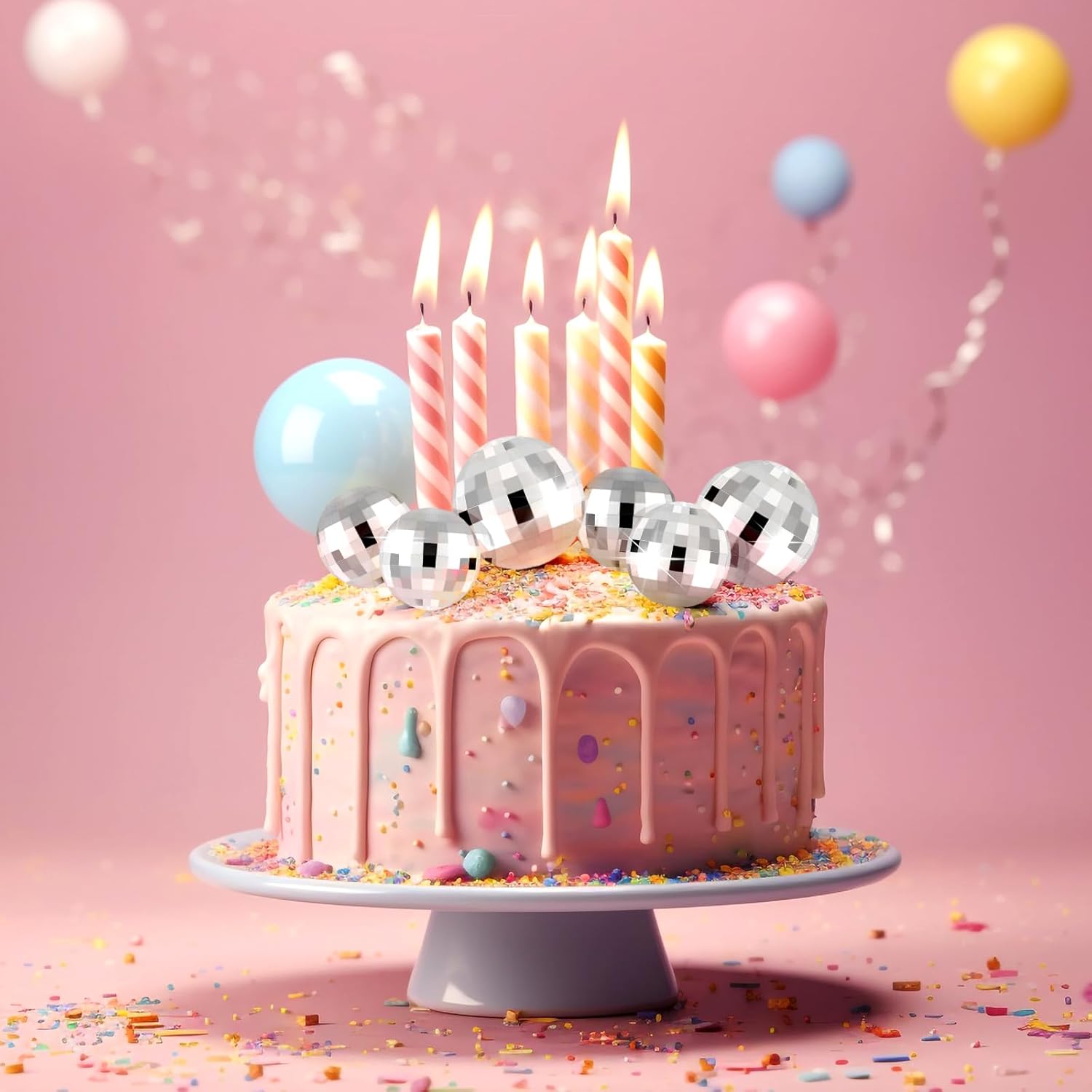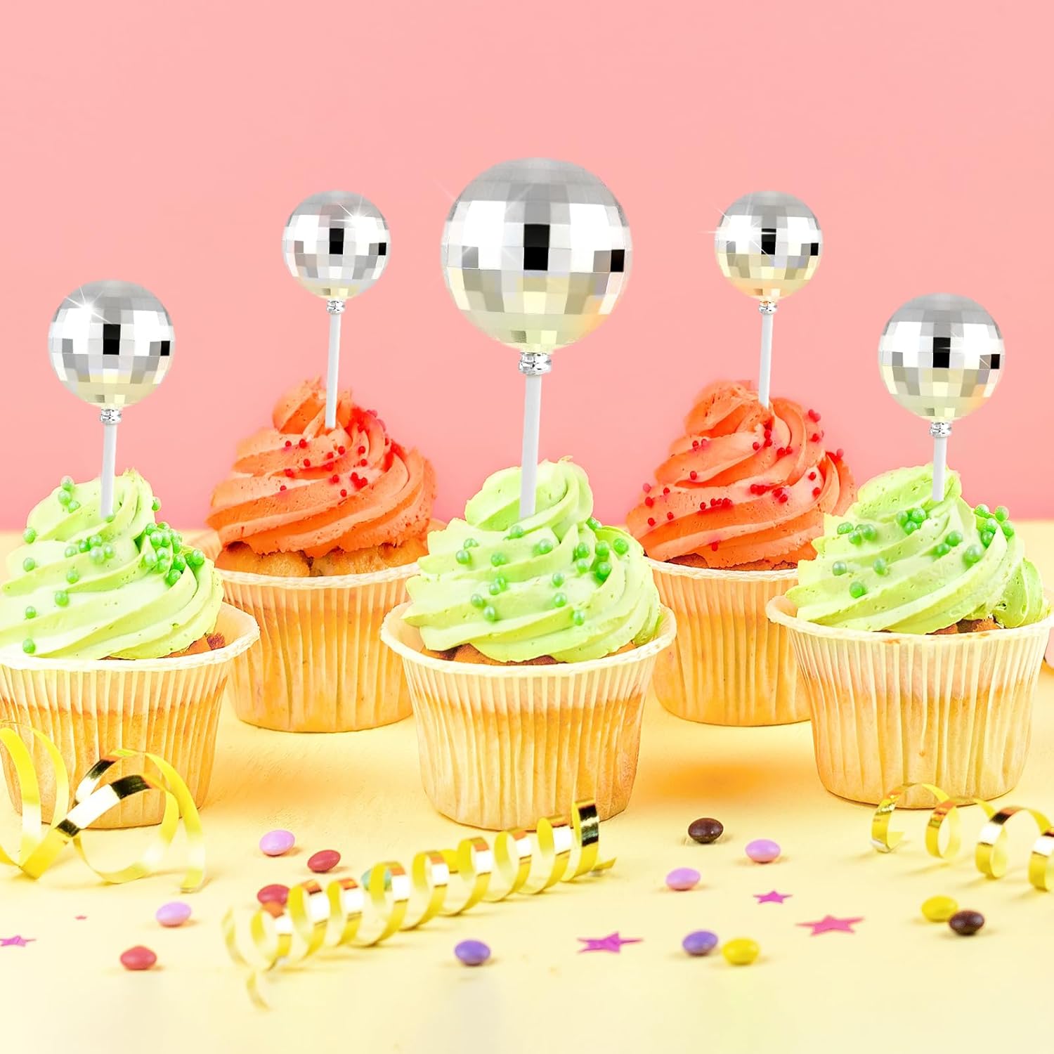 - Material: these disco ball decorations for cake are made of palstic. Safe to decorate food at room temperature, such as cake or dessert decorating use, or cupcakes, fruits, cheese and any dish and appetizer you want to decorate.