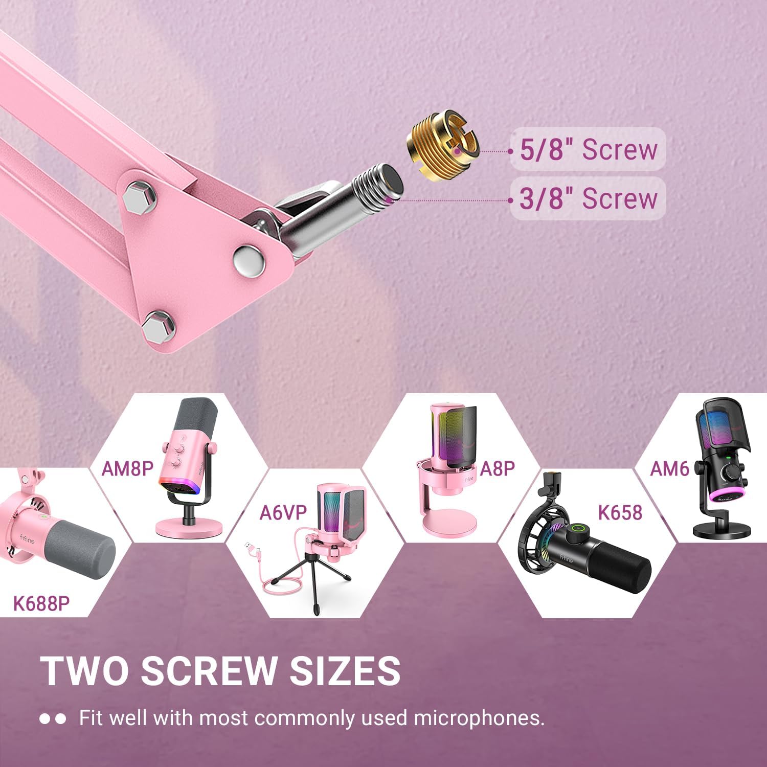 - [Full Adjustment] The boom arm stand offers 360° horizontal swivel and 180° vertical tilt, letting you position the mic effortlessly for podcasts, streaming, or gaming. Adjust the microphone arm to capture voices from desirable angle or sitting/standing use. The vibrant pink adds flair while keeping your setup flexible.