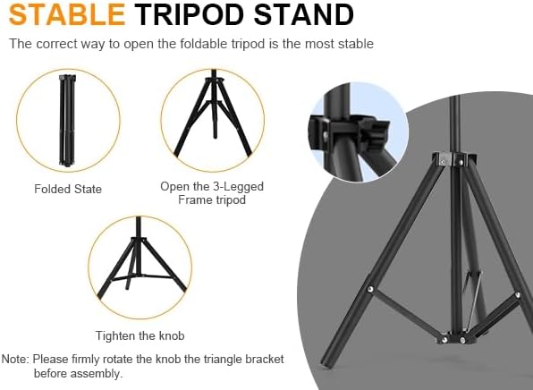 - 【Stable Tripod Stand】: Made of with enhanced metal with rustproof coating, the triangle brackets ensure high strength and durability, not easy to bend, deform or break. Package also includes grounding nails, ropes and sandbags, adding stability and security even in windy days.