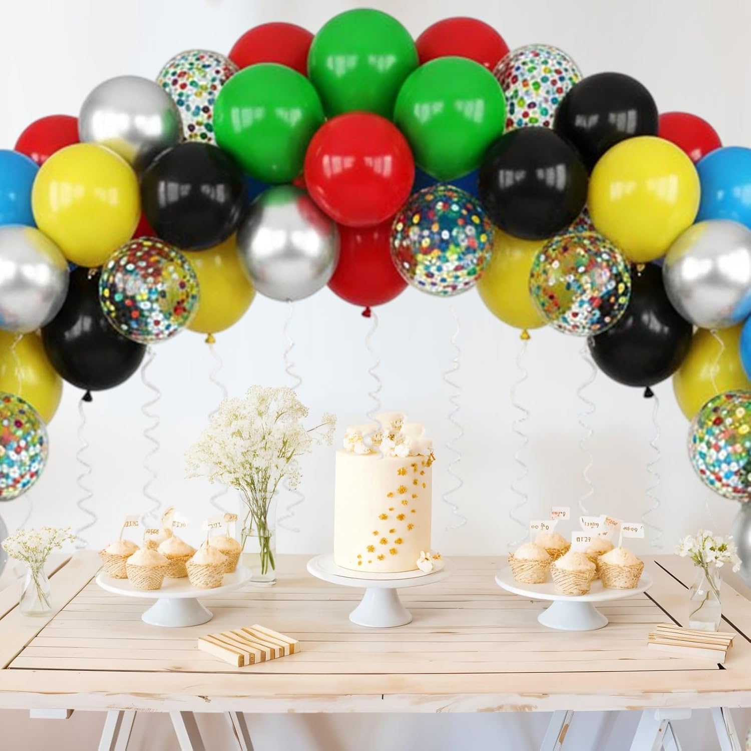 Red Yellow Blue Green Balloon, 50PCS 12Inch Multicolor Balloons with Black Red Blue Yellow Green Silver Ballons and Colorful Confetti Ballon for Birthday,Game Themed Party Supplies